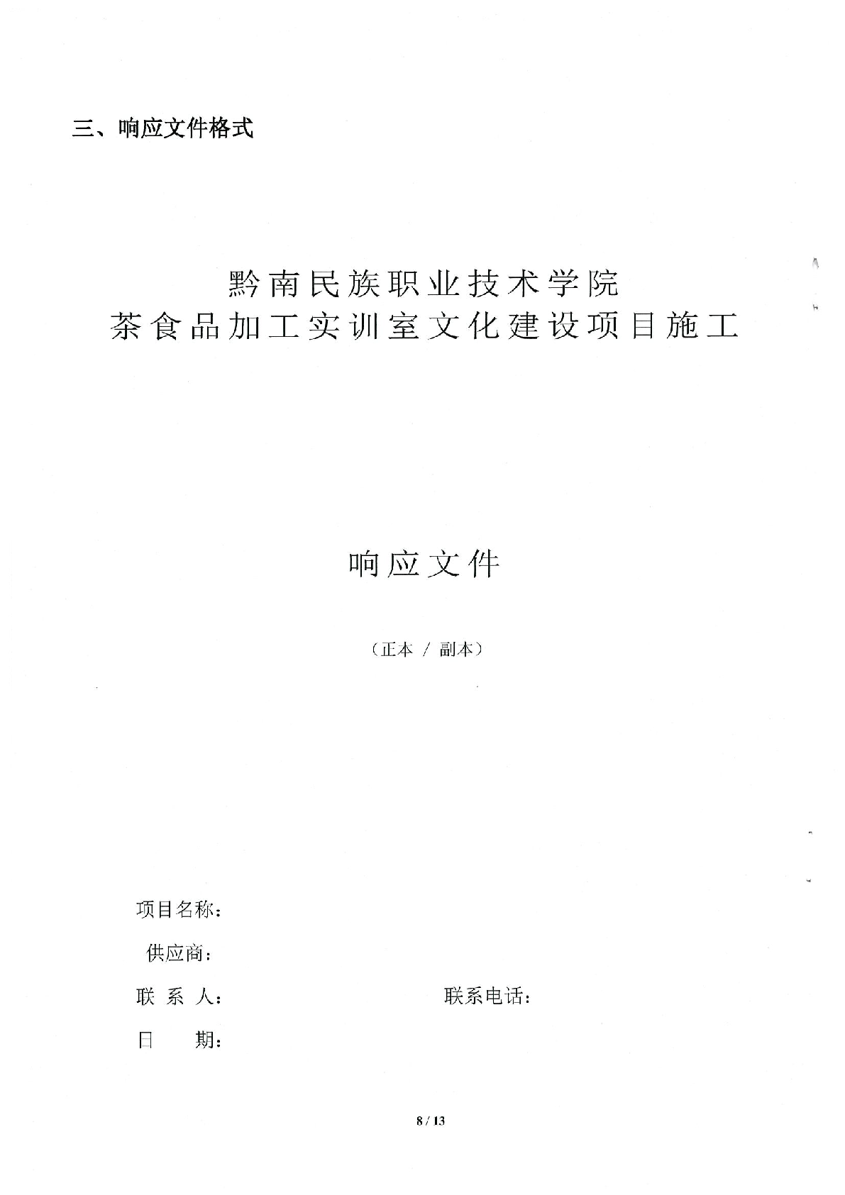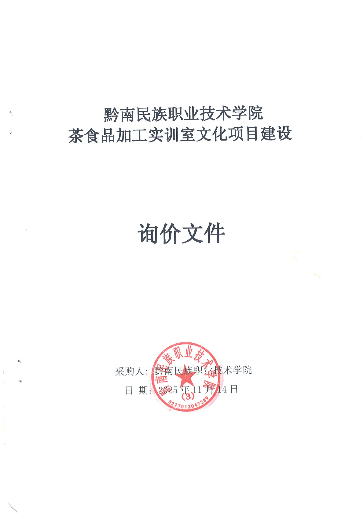黔南民族职业技术学院茶食品加工实训室文化建设项目询价文件