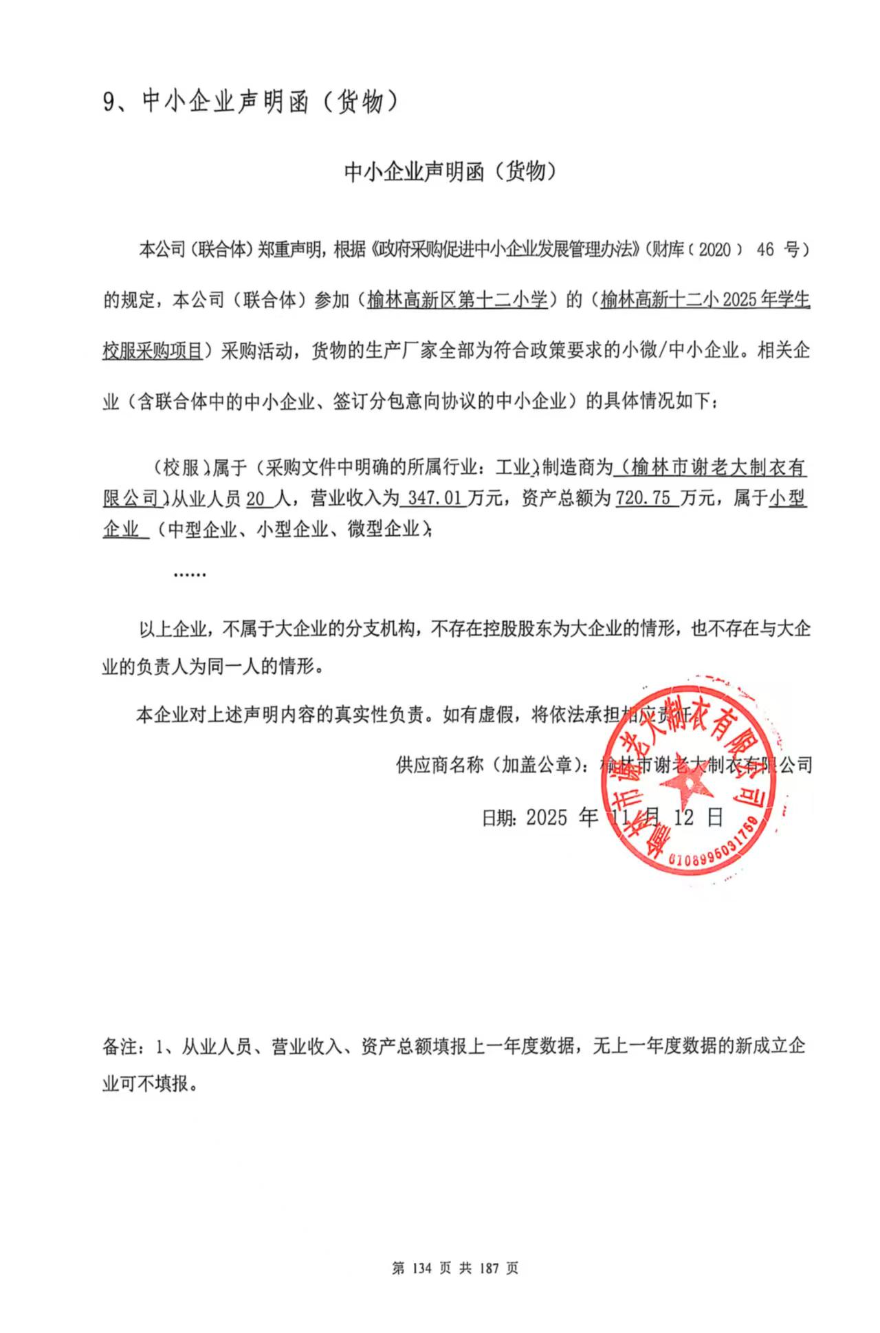 *.榆林市谢老大制衣有限公司,最终报价:****;******.**元,校服单价: ***.**元/套。