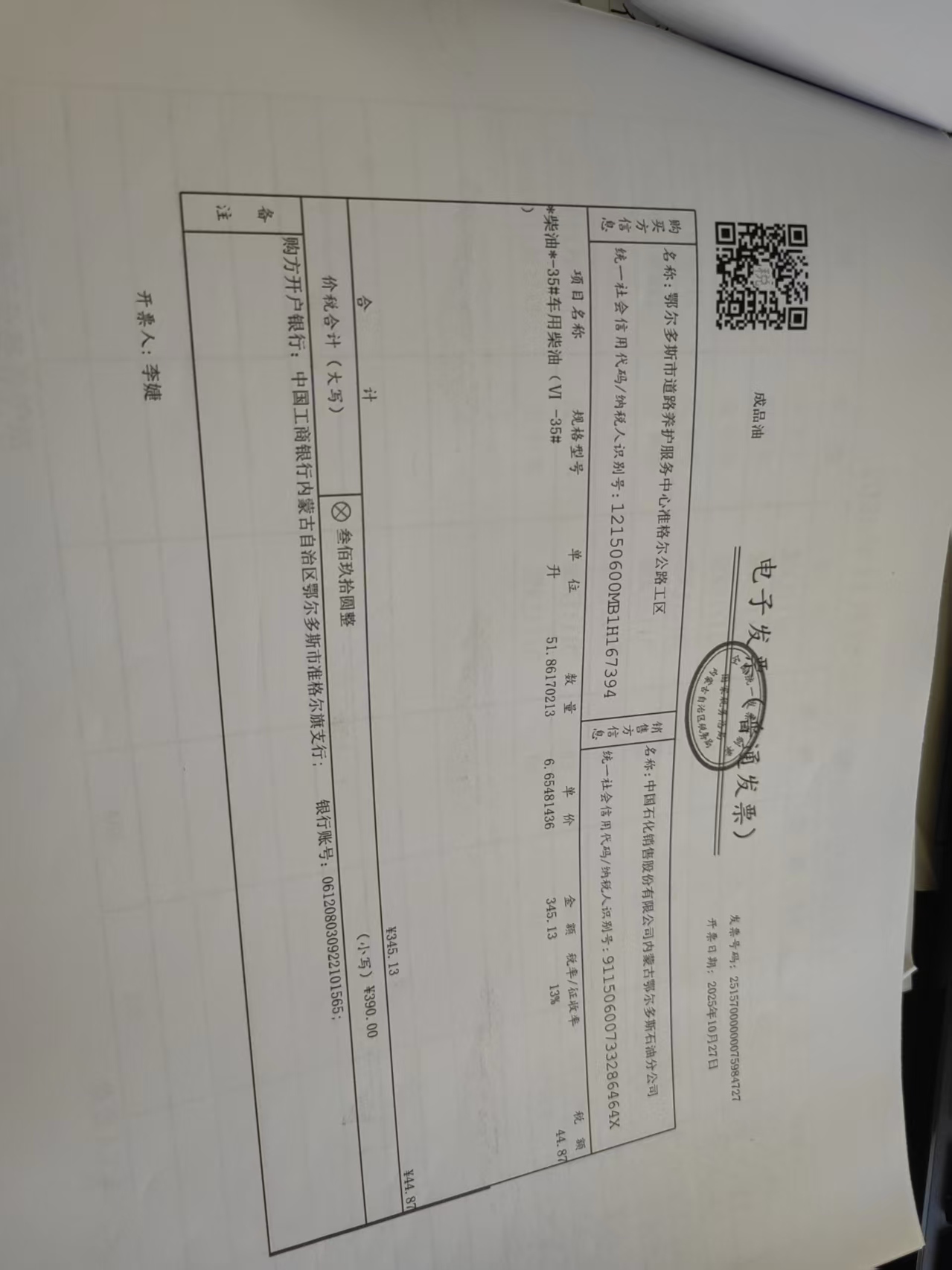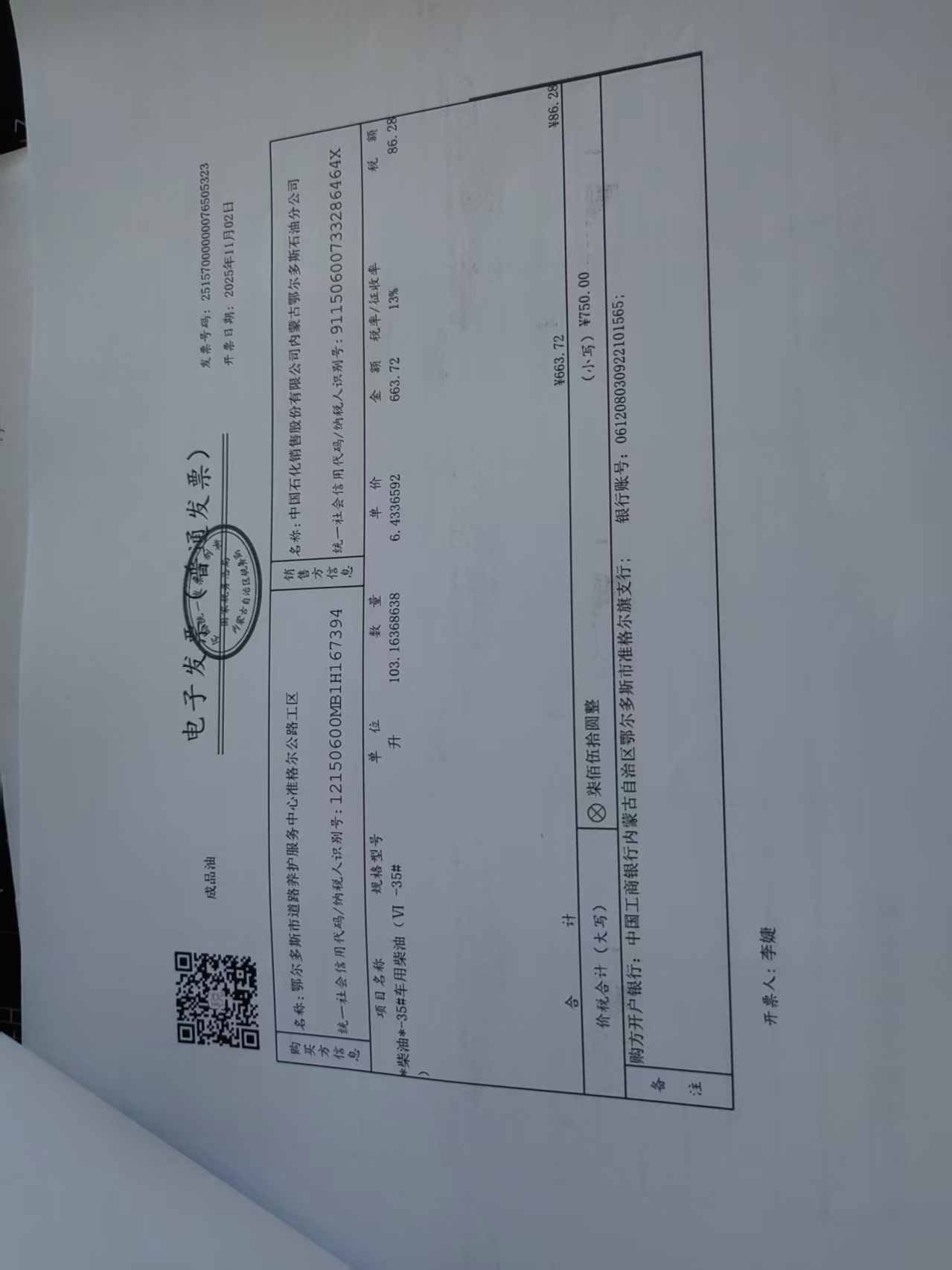 鄂尔多斯市道路养护服务中心准格尔公路工区前房子公路养护站车辆油料费(杨...
