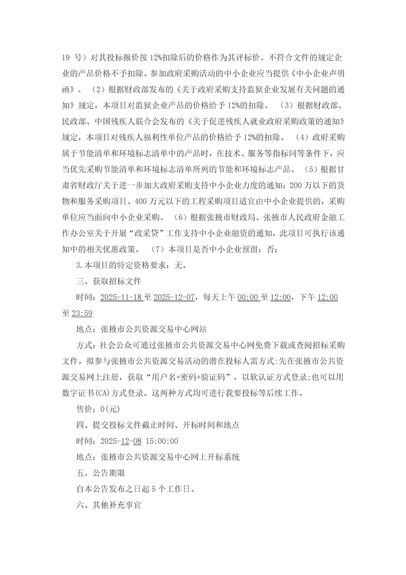 甘肃/张掖 招标采购