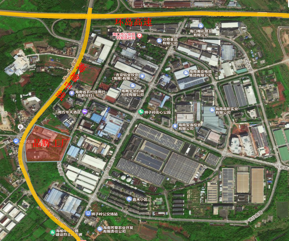 工厂位于狮子岭工业园区内,周边工商业较为集中,临近环岛高速和海榆中线,交通极为便利,具备发展加工、仓储、物流产业的绝佳区位条件。同时所在狮子岭工业园属于海南自由贸易港重点园区范围,可最大程度享受自贸港优惠政策。