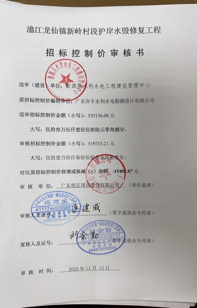 翁源县水利水电工程建设管理中心 拟对滃江龙仙镇新岭村段护岸水毁修复工程选定承包单位,欢迎符合资格条件的意向承包企业通过韶关市限额以下建设工程交易系统报名参加。凡成功报名参与项目交易,即代表意向承包企业已经充分理解和完全响应本交易公告及其附件的全部内容,以及在交易过程中项目建设单位、韶关市公共资源交易中心发出的修正和补充文件等。项目具体交易事宜如下:
