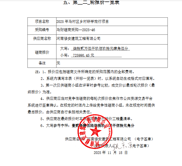 焦作市马村区农业农村局2025年马村区乡村研学旅行项目-成交公告