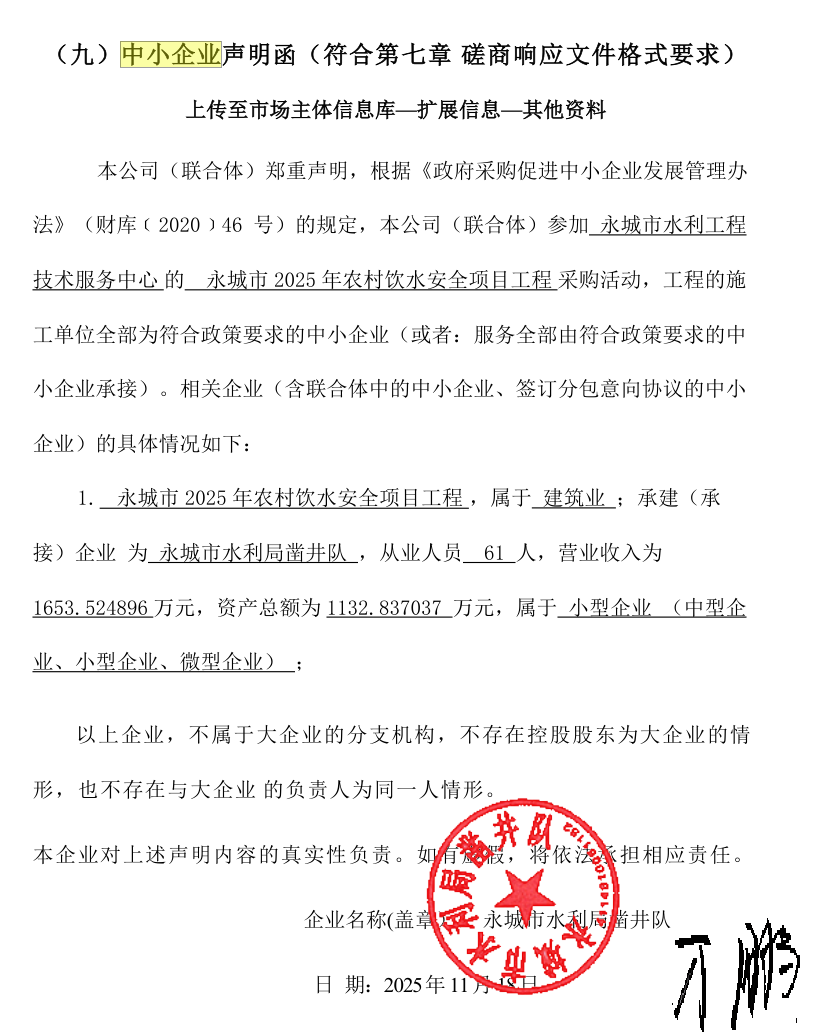 永城市2025年农村饮水安全项目工程项目-成交公告
