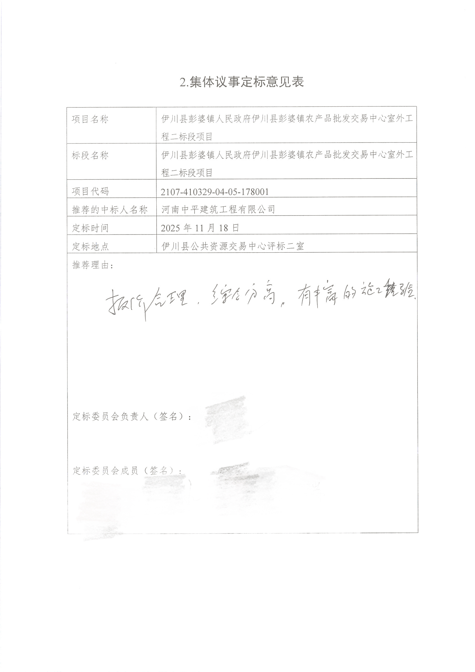 伊川县彭婆镇人民政府伊川县彭婆镇农产品批发交易中心室外工程二标段项目*中标公告