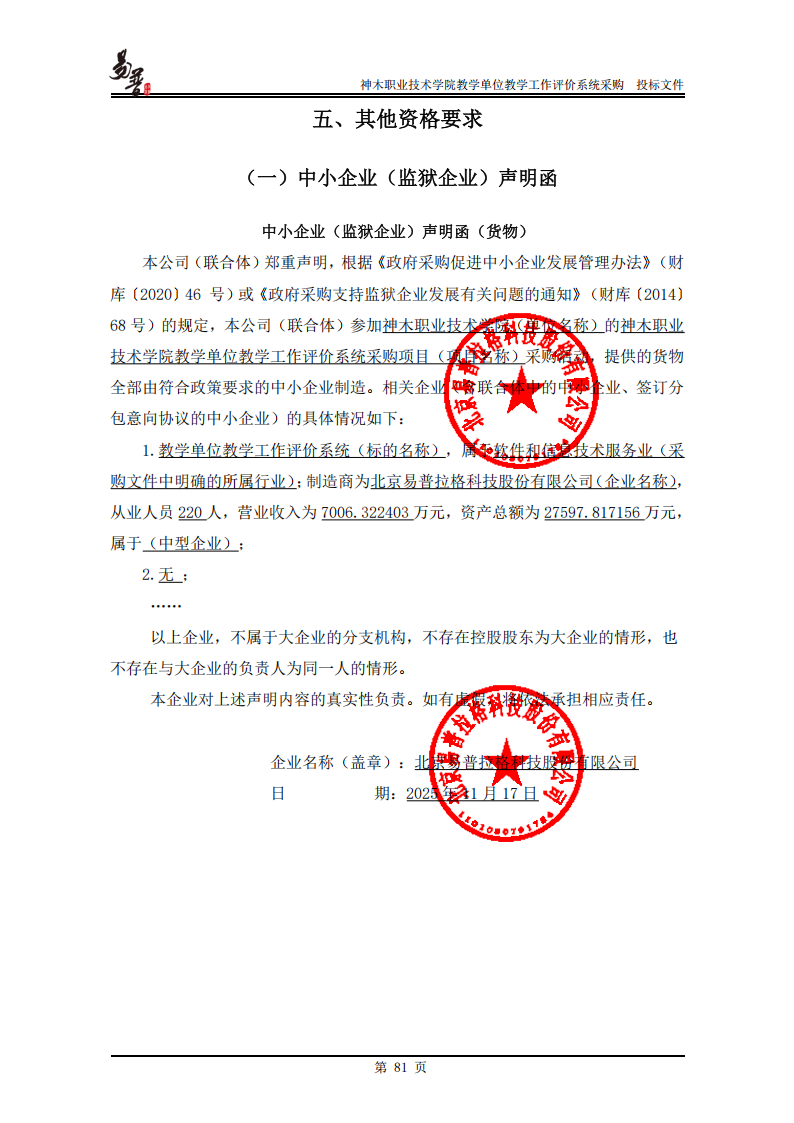 神木职业技术学院教学单位教学工作评价系统采购项目中标(成交)结果公告