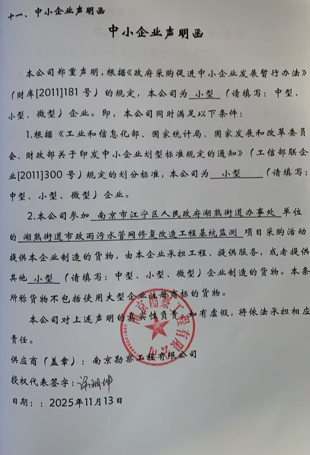 供应商名称:南京勘察工程有限公司