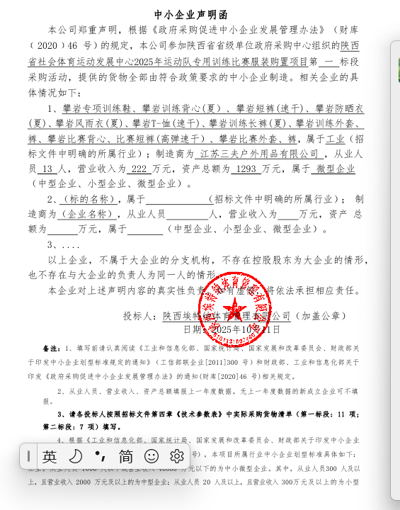 陕西省社会体育运动发展中心2025年运动队专用训练比赛服装购置项目结果更正公告(第一次)