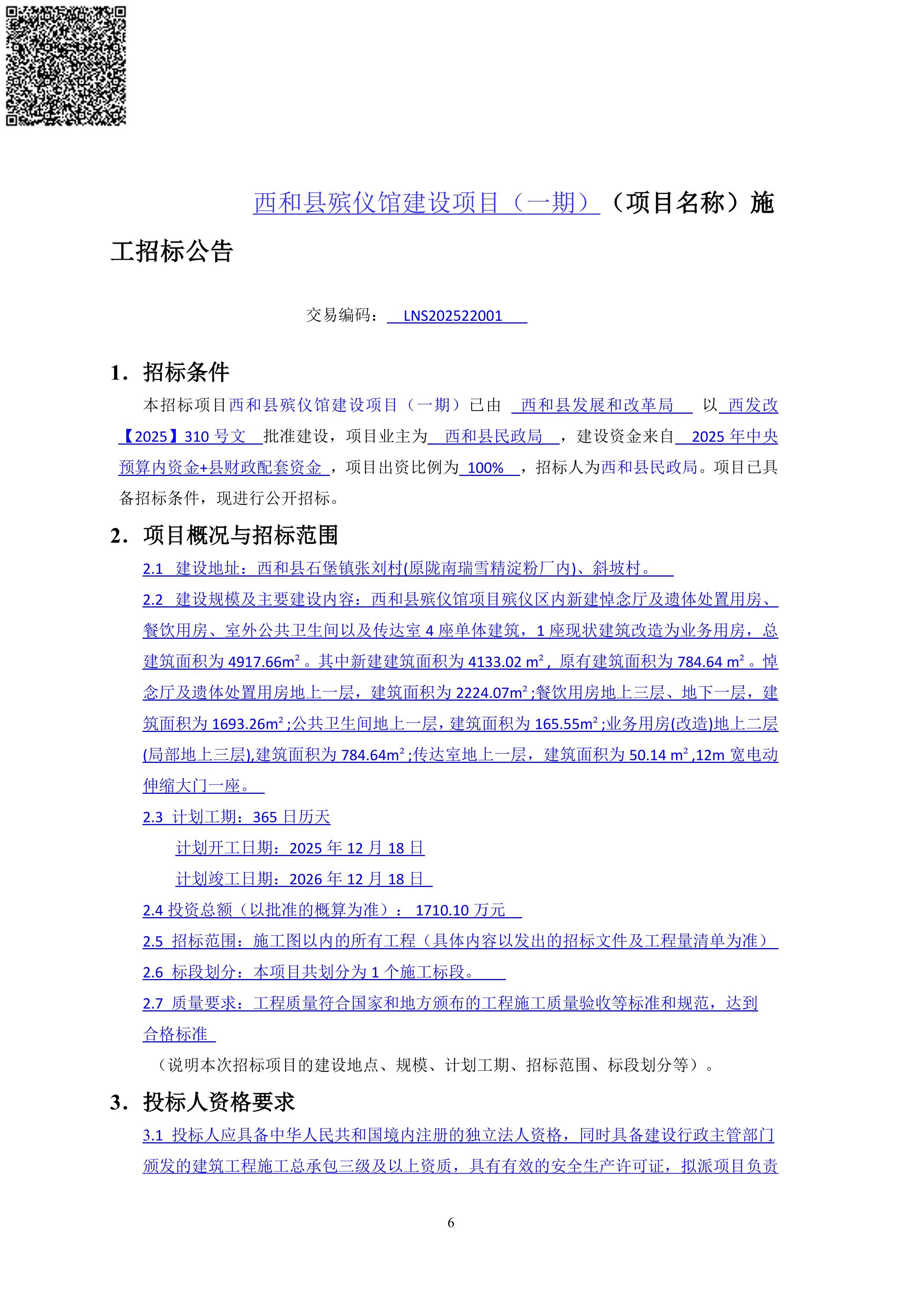 西和县殡仪馆建设项目(一期)施工招标公告招标/资审公告