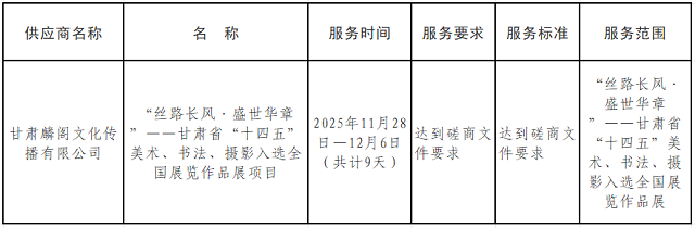 甘肃省文化和旅游厅“丝路长风·盛世华章”——甘肃省“十四五”美术、书法、摄影入选全国展览作品展项目成交公告