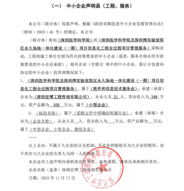 *.名称:深圳医学科学院及深圳湾实验室院区永久场地一体化建设(一期)项目信息化工程全过程项目管理服务