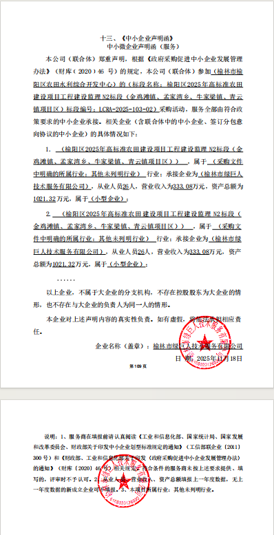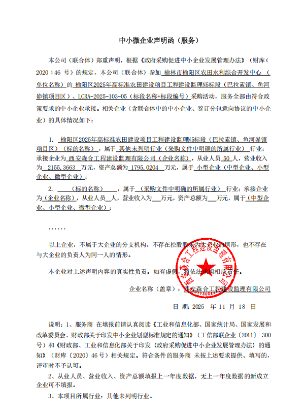 榆阳区2025年高标准农田建设项目工程建设监理中标(成交)结果公告