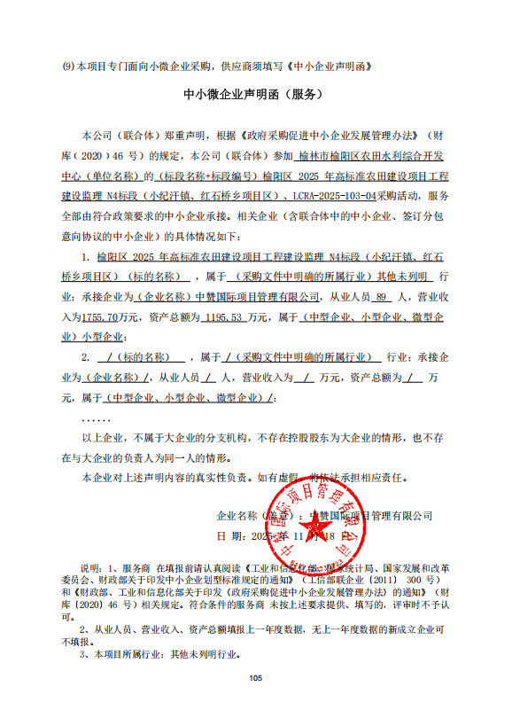合同包*(榆阳区****年高标准农田建设项目工程建设监理**标段(麻黄梁镇、芹河镇、马合镇项目区)):
