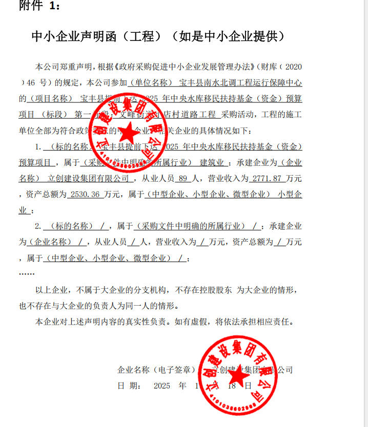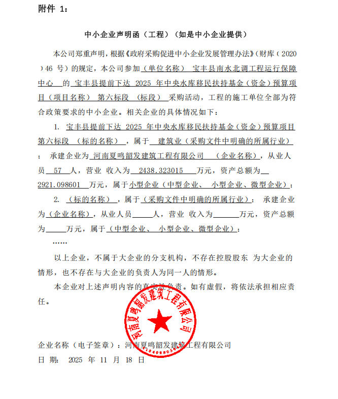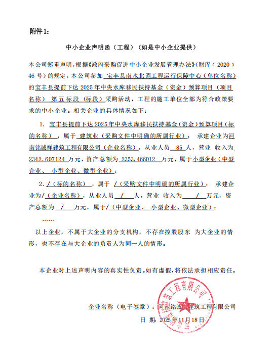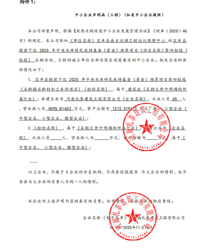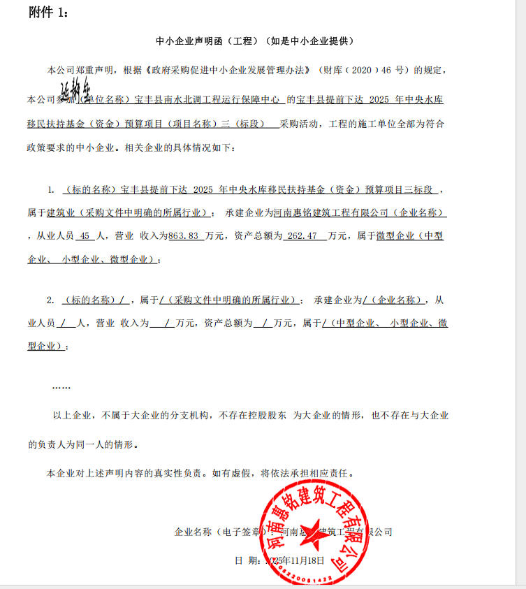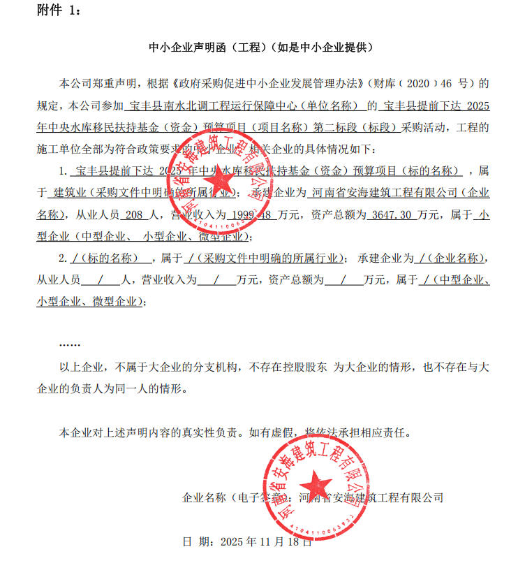 宝丰县南水北调工程运行保障中心宝丰县提前下达2025年中央水库移民扶持基金(资金)预算项目-成交公告