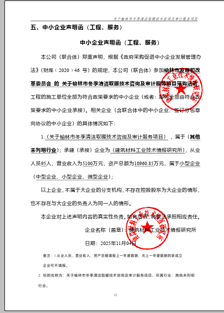 合同包*(标段编号:***************** 标段名称:榆林市冬季清洁取暖技术咨询服务):
