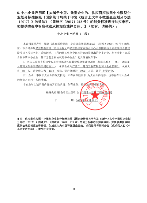 二、项目名称:兴安县崔家乡粉山中心小学附属幼儿园教学综合楼建设项目