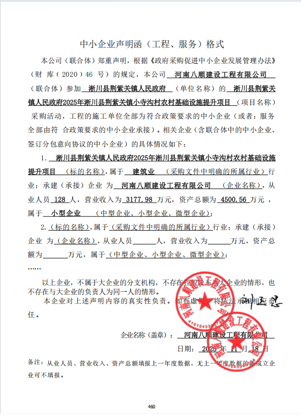 淅川县荆紫关镇人民政府2025年淅川县荆紫关镇小寺沟村农村基础设施提升项目-成交公告