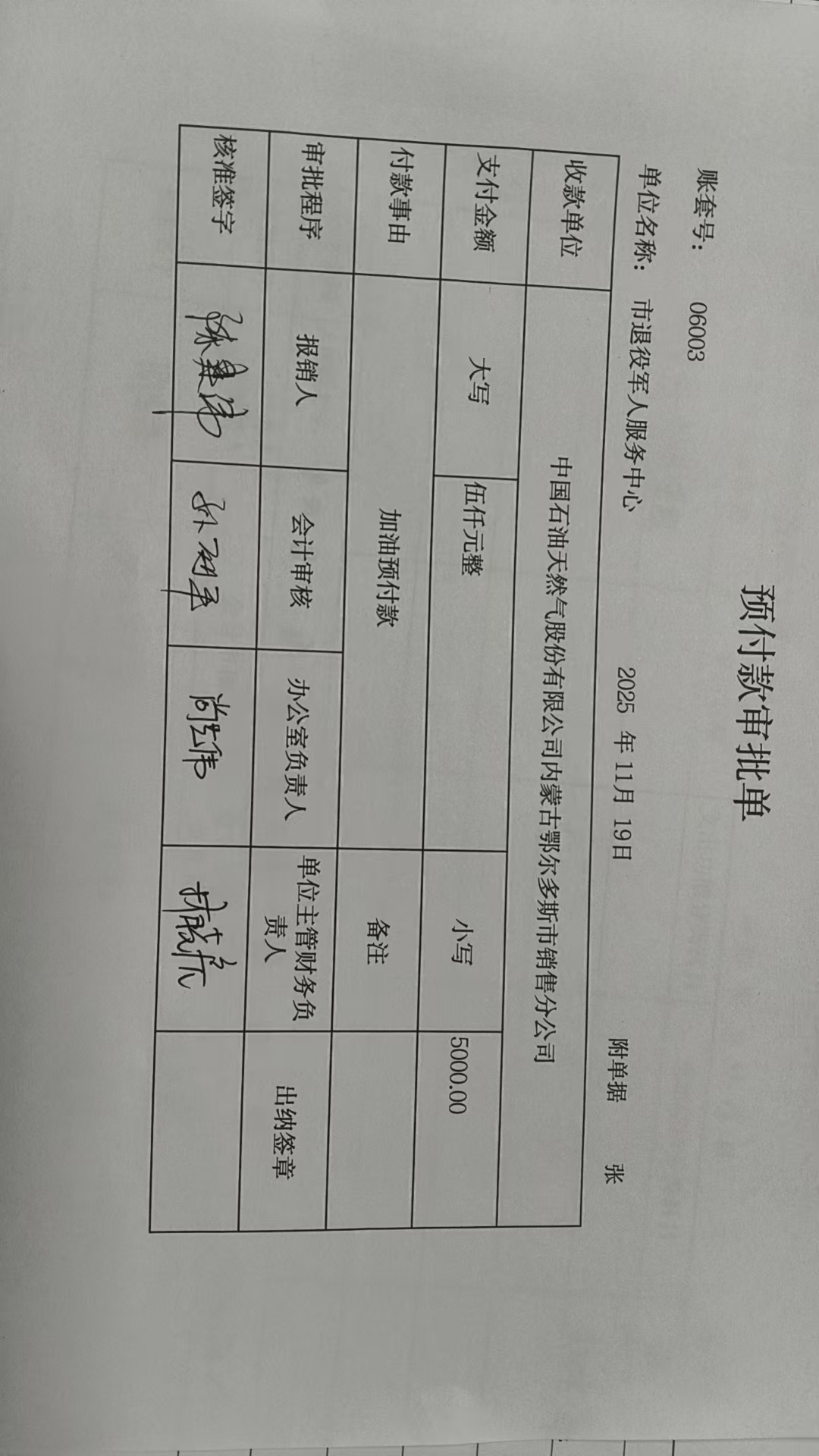 鄂尔多斯市退役军人服务中心公车加油第三次预付款政府采购合同公告