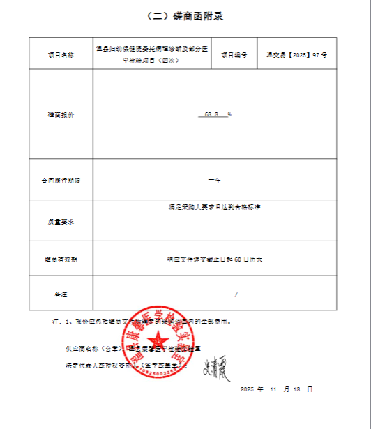 温县妇幼保健院委托病理诊断及部分医学检验项目(四次)成交结果公告