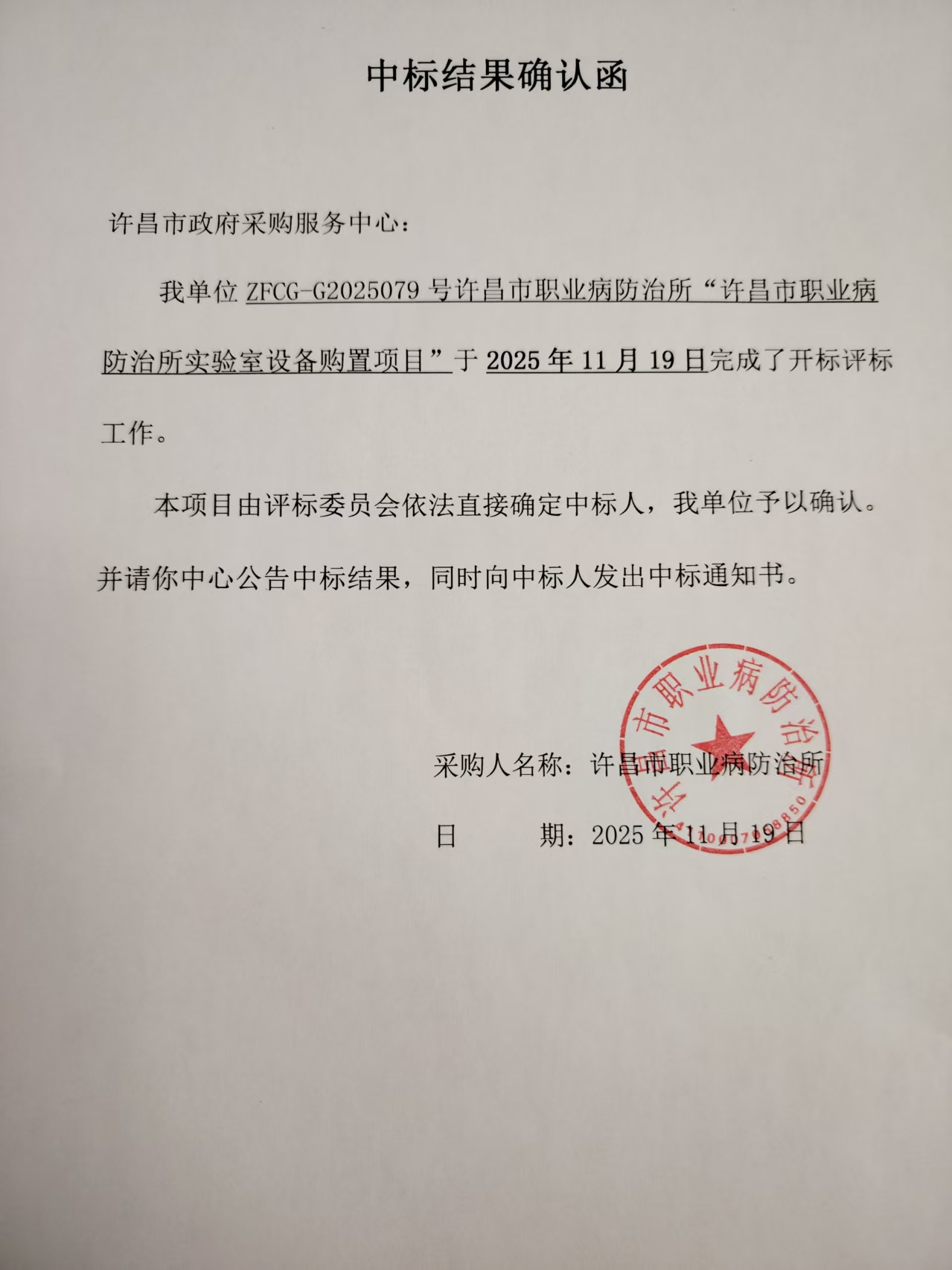 ZFCG-G2025079号许昌市职业病防治所“许昌市职业病防治所实验室设备购置项目”-中标公告