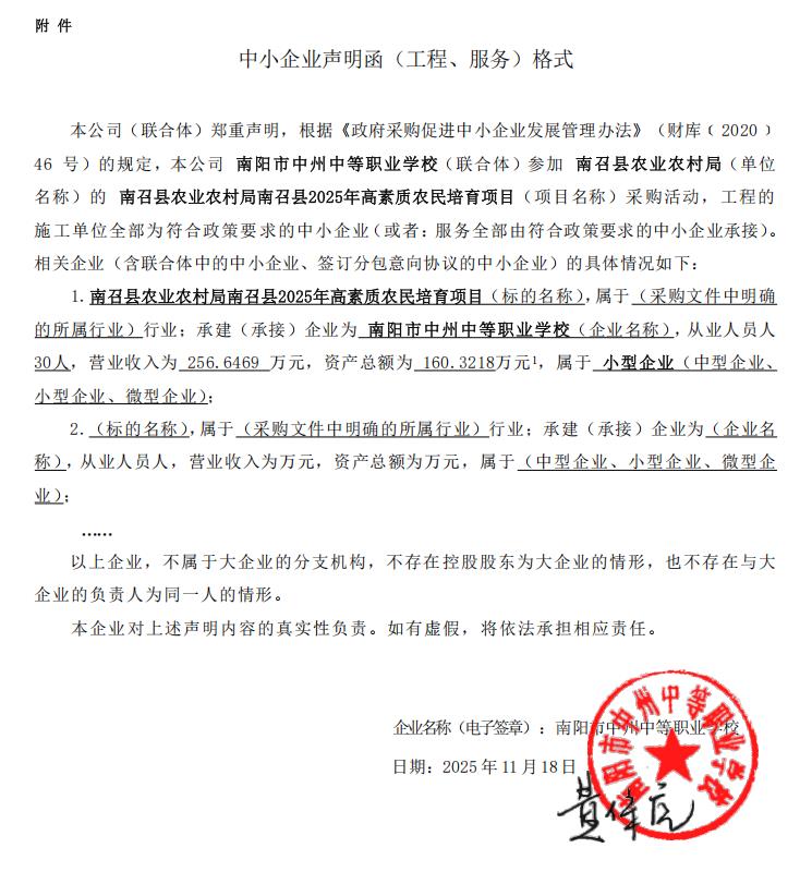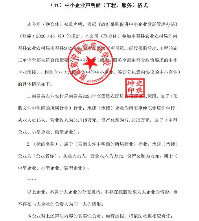 南召县农业农村局南召县2025年高素质农民培育项目-成交公告