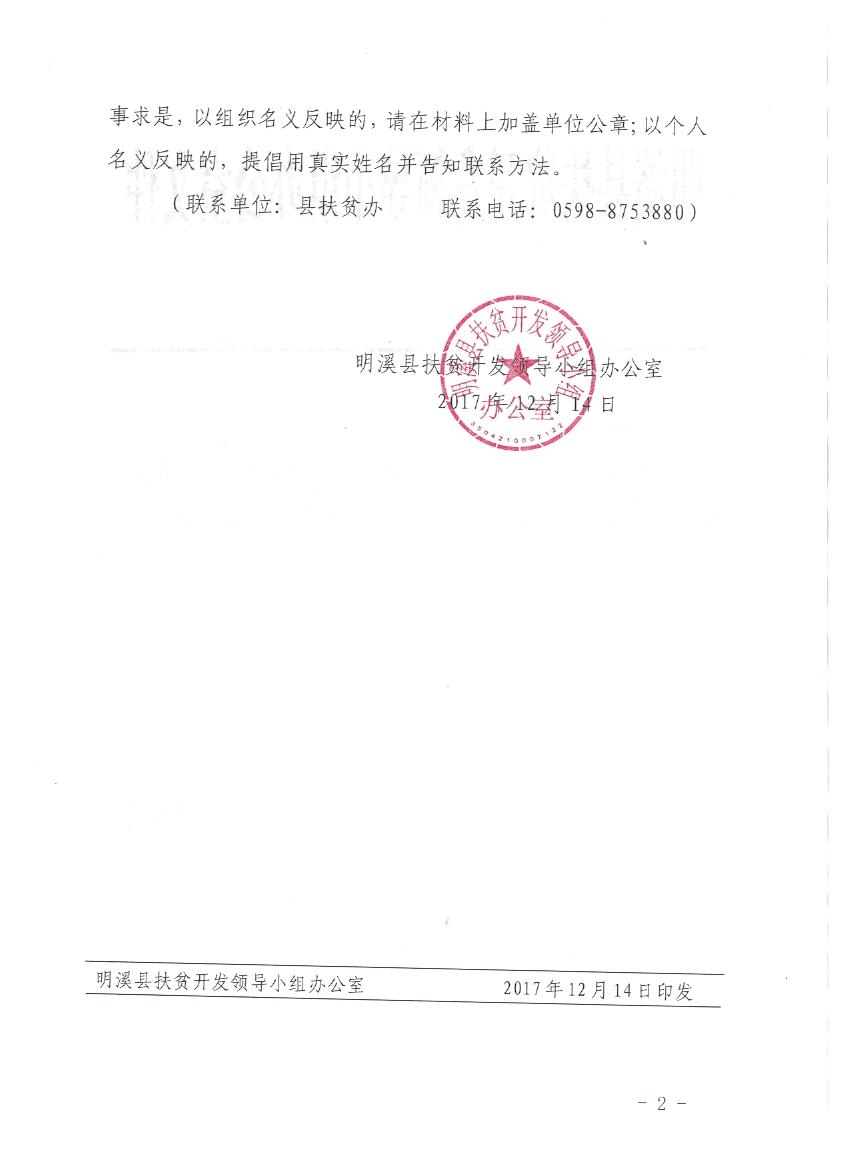 明溪县扶贫开发领导小组办公室关于2017年县级财政整合资金支持光伏项目招标代理、勘察、设计、监理等费用的公示