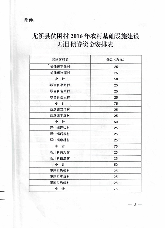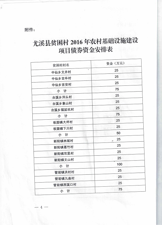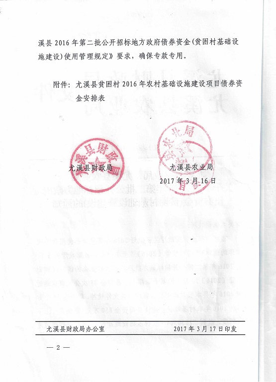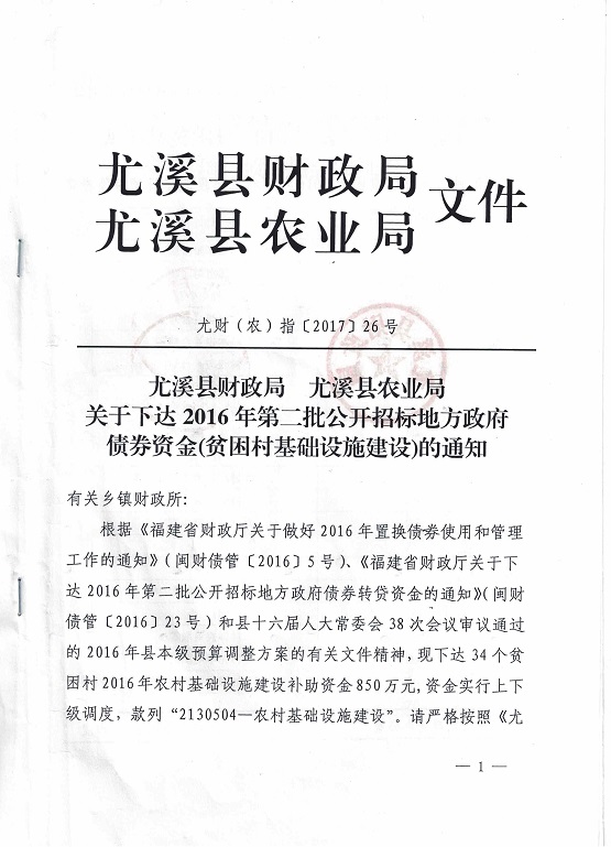 尤溪县财政局 尤溪县农业局关于下达2016年第二批公开招标地方政府债券资金(贫困村基础设施建设)的通知(尤财(农)指〔2017〕26号)