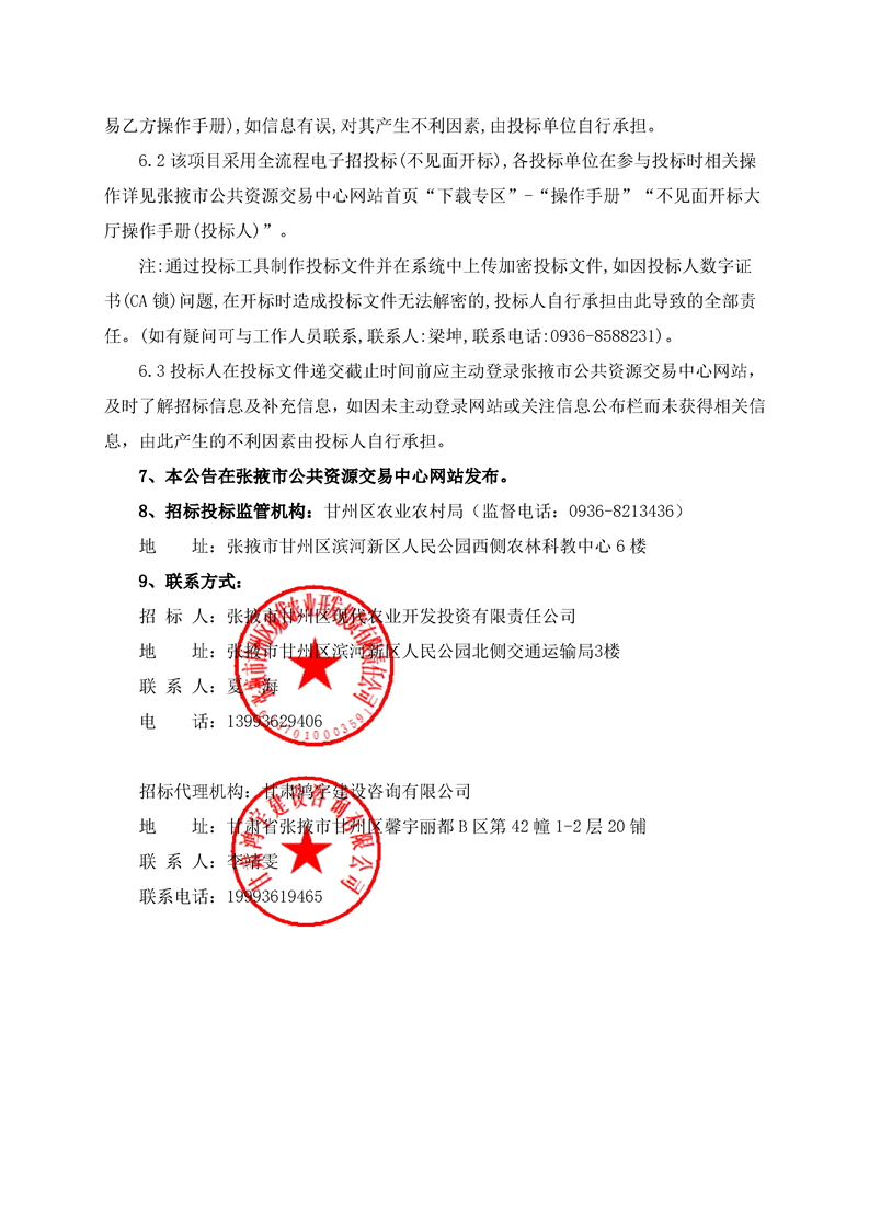 甘肃/张掖 招标采购