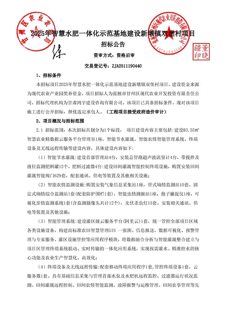 2025年智慧水肥一体化示范基地建设新墩镇双堡村项目
