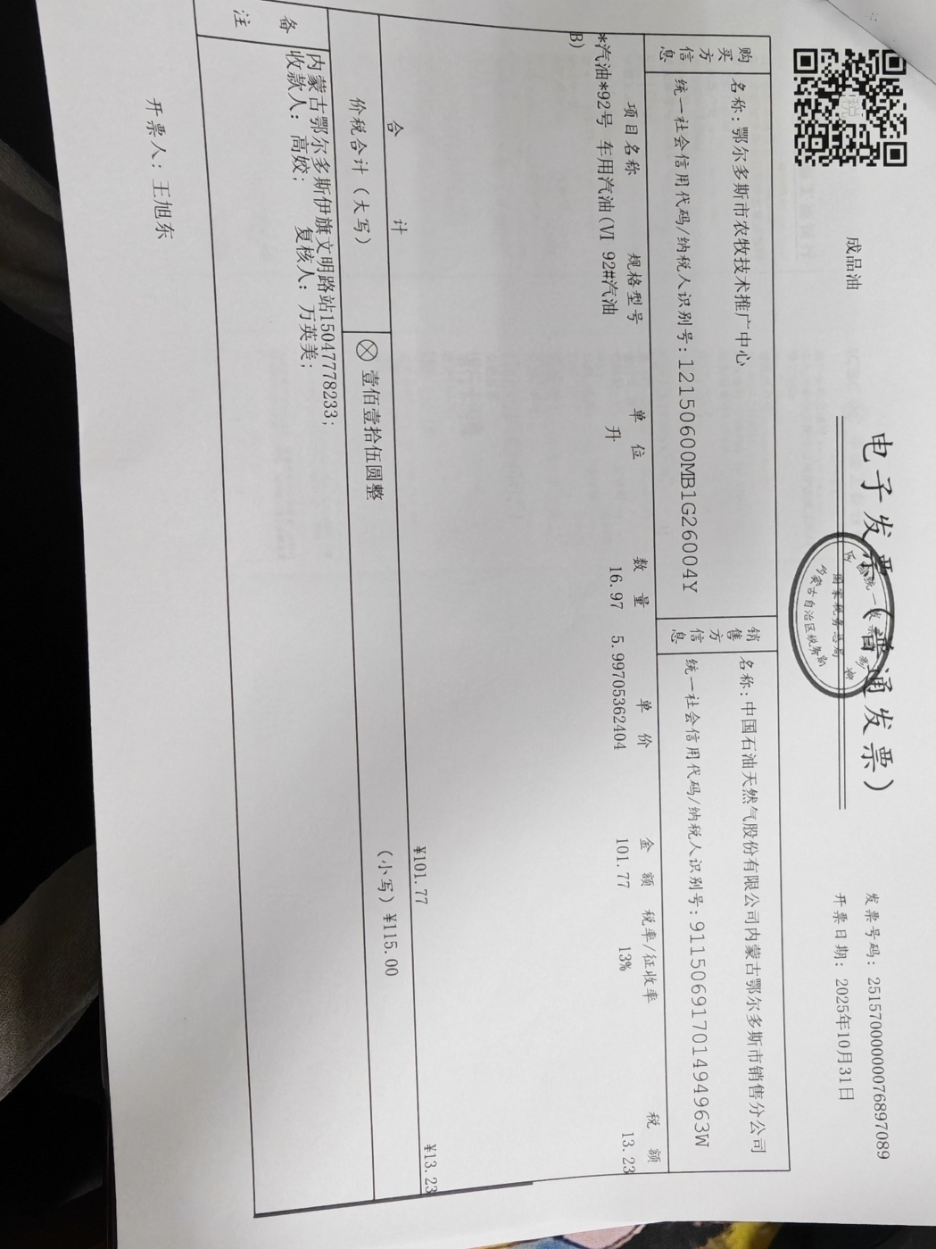 一、合同编号:鄂财购备字(电子)[****]*****号二、合同名称:车辆加油服务三、项目编号:鄂财购备字(电子)[****]*****号四、项目名称:车辆加油服务*****五、合同主体采购人(甲方):鄂尔多斯市农牧技术推广中心 地址:鄂尔多斯市康巴什区中央商务广场************楼 联系方式:************ 供应商(乙方):中国石油天然气股份有限公司内蒙古销售分公司 地址:内蒙古自治区呼和浩特市新城区成吉思汗大街 联系方式:************ 六、合同主要信息主要标的: