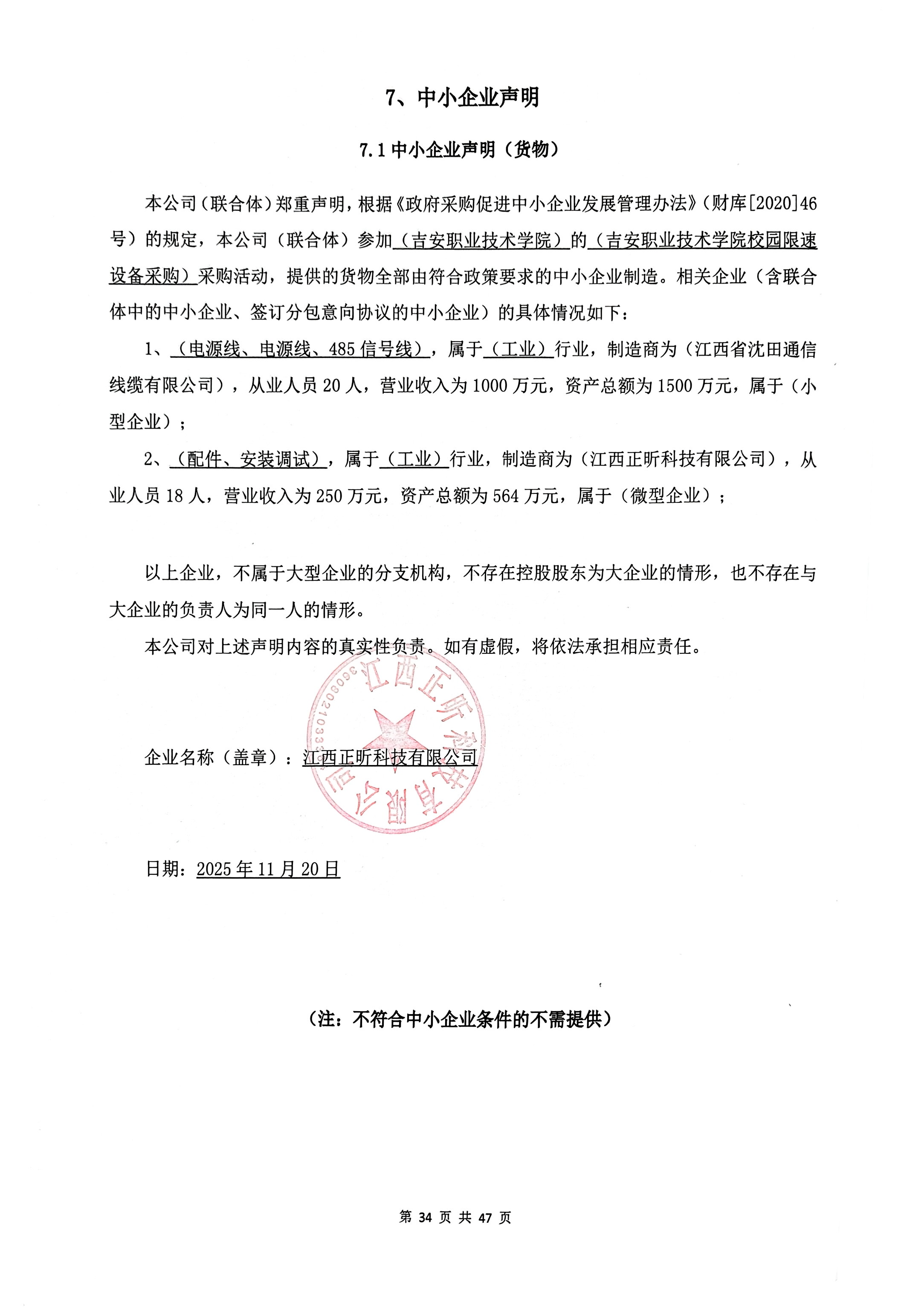 江西企恒企业管理有限公司关于吉安职业技术学院校园限速设备采购(项目编号:赣企恒招〔2025〕-2...