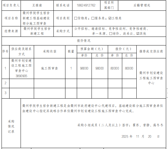 [分散采购]衢州学院学生宿舍新建工程基础建设部分施工图审查服务采购项目公示