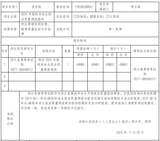[分散采购]2025年高校毕业生就业质量调查报告服务采购项目公示