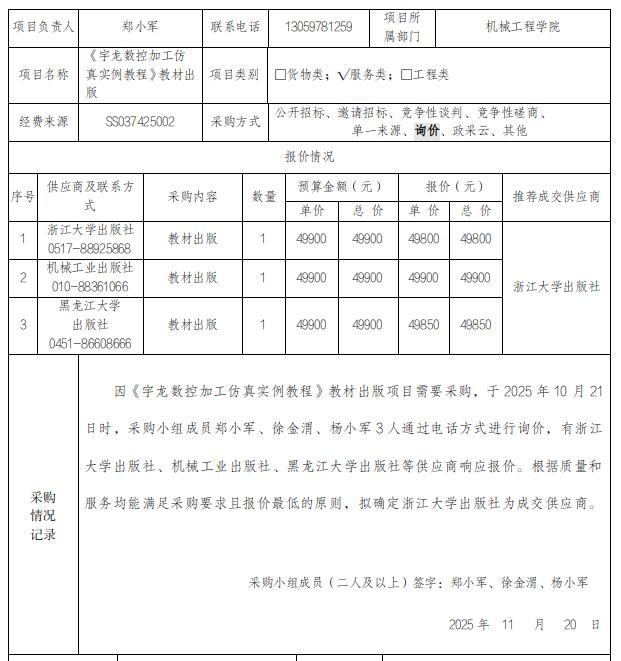 [分散采购]《宇龙数控加工仿真实例教程》教材出版采购项目公示 |