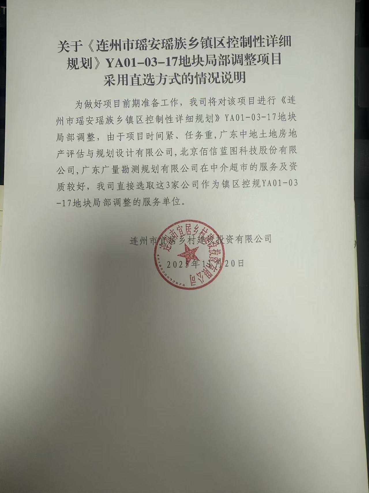 关于为【《连州市瑶安瑶族乡镇区控制性详细规划》**********地块局部调整项目】公开选取【乡村振兴咨询服务,城乡规划编制】机构的公告