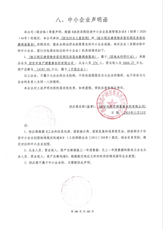 西北妇女儿童医院曲江院区建筑物房屋实测及房屋权籍调查服务中标(成交)结果公告