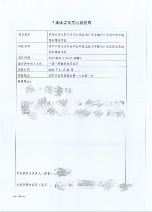 洛阳市洛龙区农业农村局洛龙区丰李镇农村生活污水收纳管网建设项目-中标公告