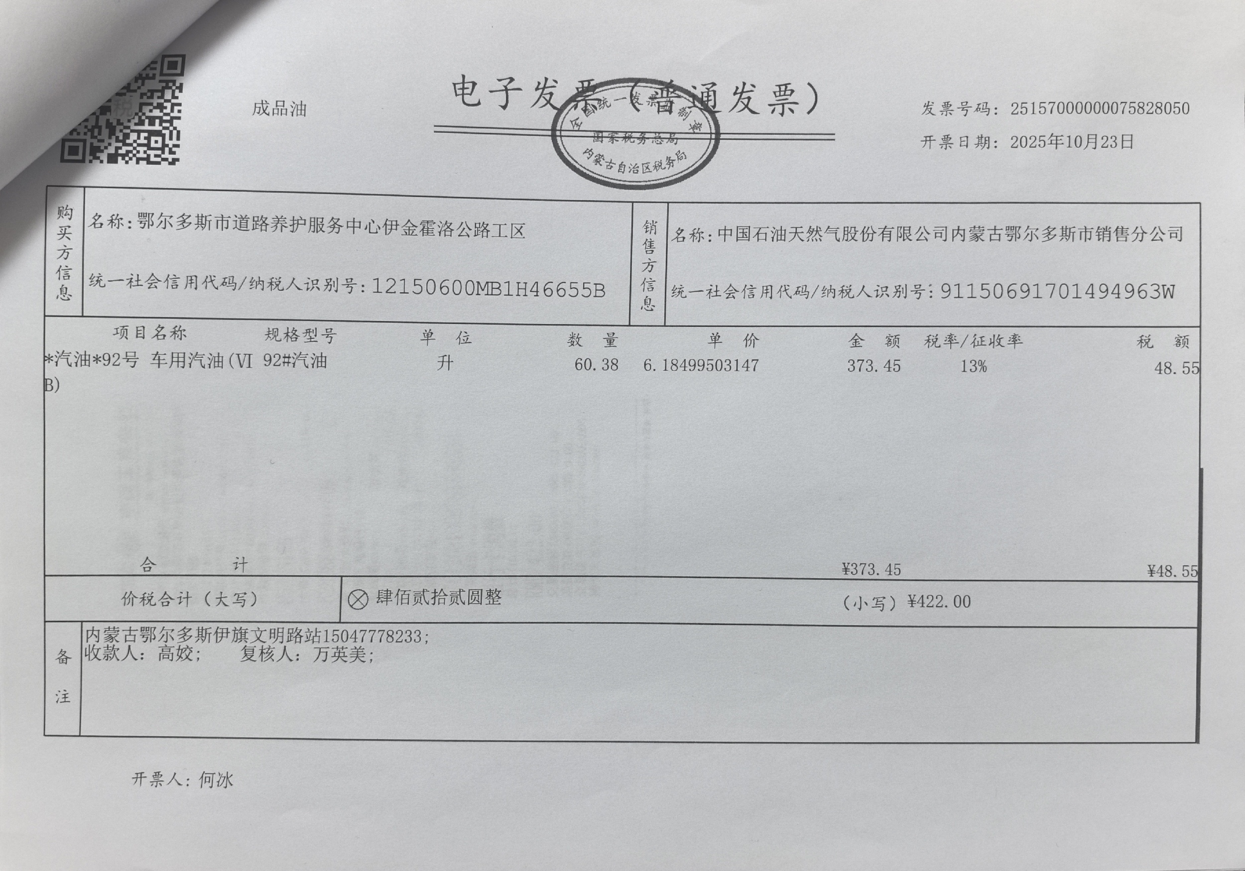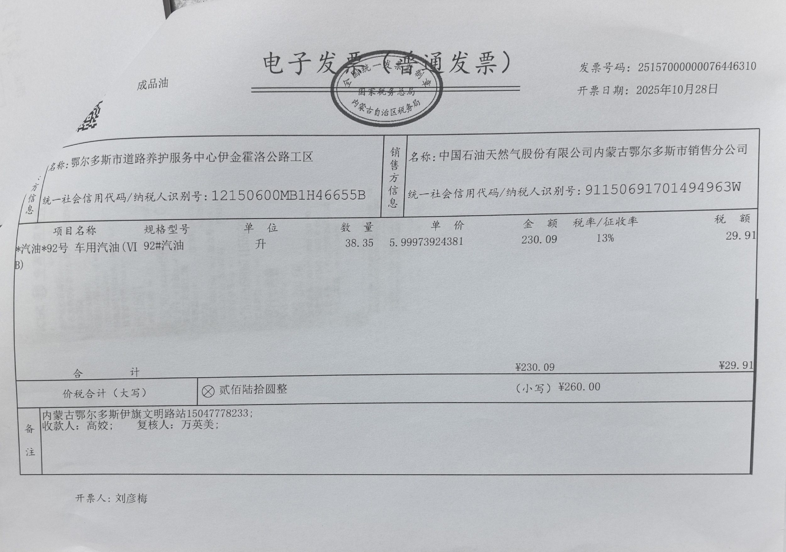 鄂尔多斯市道路养护服务中心伊金霍洛公路工区车辆加油服务(公务用车蒙KM709A)政府采购合同公告