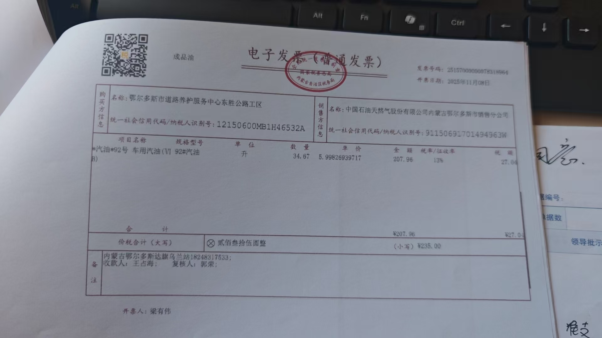 鄂尔多斯市道路养护服务中心东胜公路工区车辆油材料政府采购合同公告
