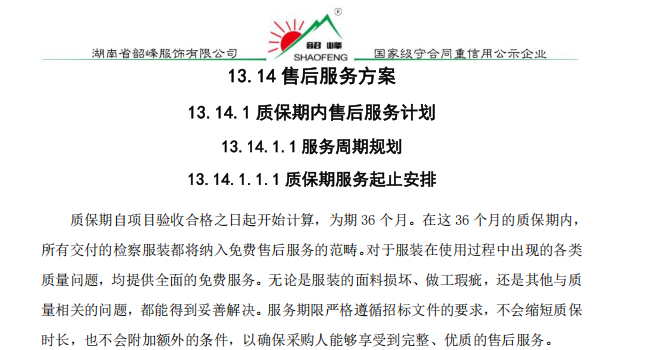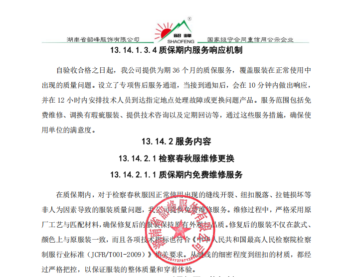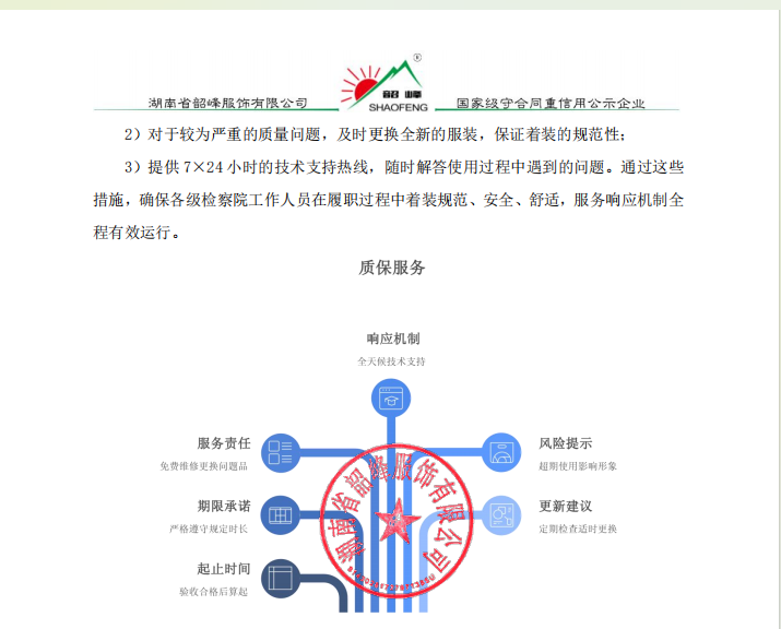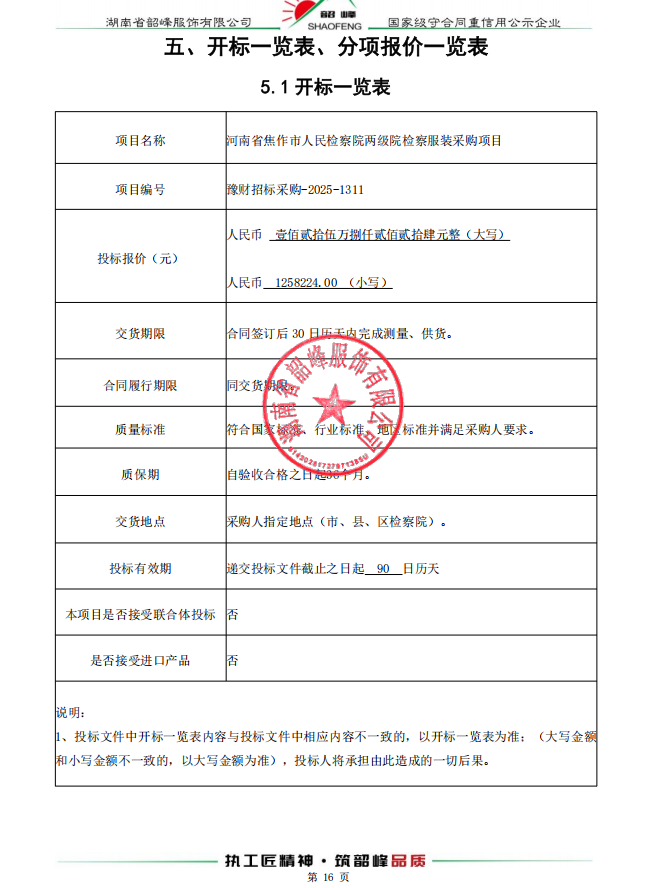 | *、采购内容:采购检察制服(含解放区院、山阳区院、中站区院、马村区院、博爱县院、修武县院、武陟县院、温县县院、沁阳市院、孟州市院)(详见招标文件第三章项目采购需求)。 *、质量标准:符合国家标准、行业标准、地区标准并满足采购人要求。 *、交货期限:合同签订后**日历天内完成测量、供货。 *、交货地点:采购人指定地点(市、县、区检察院)。 *、质保期:自验收合格之日起**个月。 *、合同履行期限:同交货期限。 | |||||||||||||||||||||||||||||