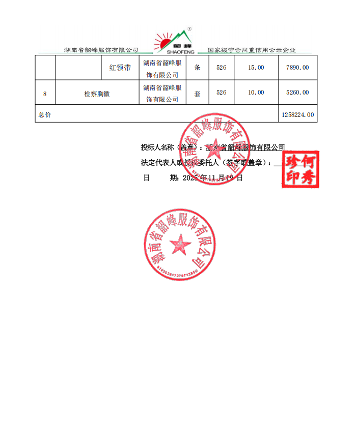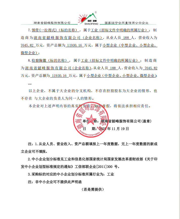 | *. 最终的评审得分及排序:排序*湖南省韶峰服饰有限公司,最终得分:**.**分;排序*山西锦义轩服饰有限公司,最终得分:**.**分;排序*湖南新姿服饰有限公司,最终得分:**.**分;排序*山西雅盛服饰有限公司,最终得分:**.**分;排序*辽宁亿茂服装有限公司,最终得分:**.**分;排序*山西达威服饰有限公司,最终得分**.**分;排序*山西瑞宝丽服装有限公司,最终得分**.**分;排序*河南西派服饰有限公司,最终得分**.**分;排序*北京蒂夫曼服装有限公司,最终得分**.**分;排序**河南吉泰服饰有限公司,最终得分**.**分;排序**郑州原寸服饰有限公司,最终得分**.**分。 *.各有关当事人对中标结果有异议的,可以在中标公告发布之日起七个工作日内,以书面形式向采购人提出质疑,并以供应商提交的质疑函接受确认日期作为受理时间,逾期未提交的不再受理。 | |||||||||||||||||||||||||||||