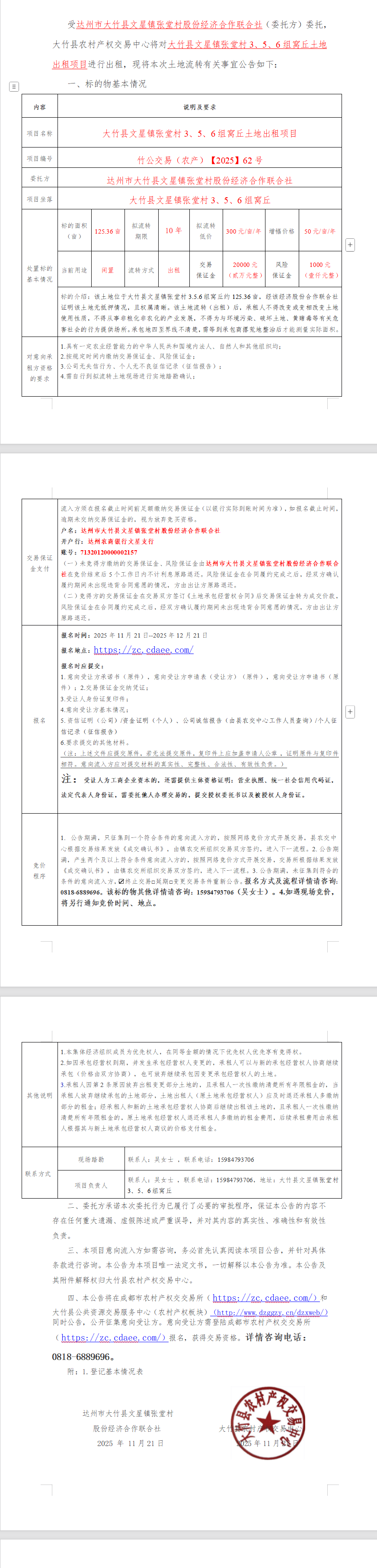 大竹县文星镇张堂村*、*、*组窝丘土地出租项目