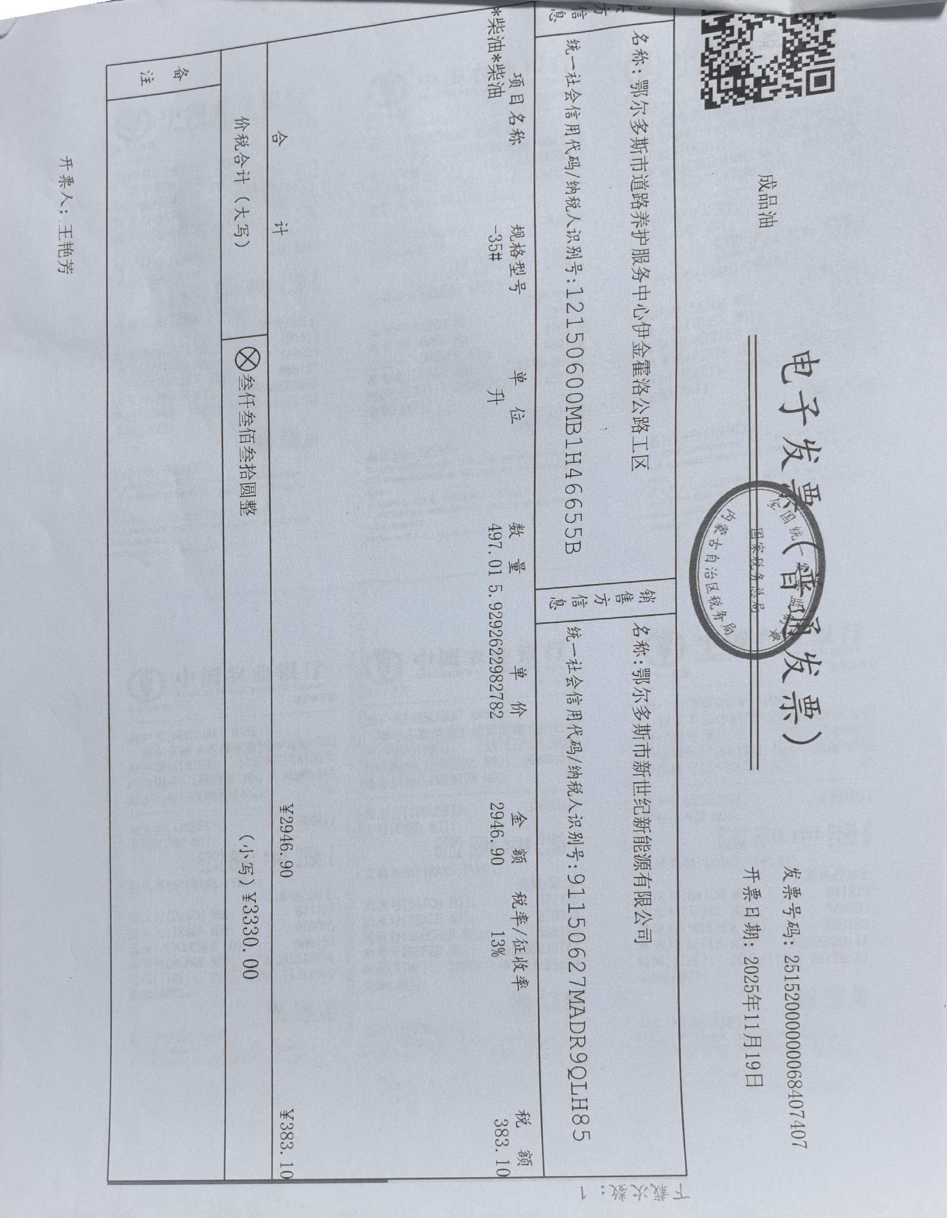 鄂尔多斯市道路养护服务中心伊金霍洛公路工区车辆加油服务(台格庙养护站)...