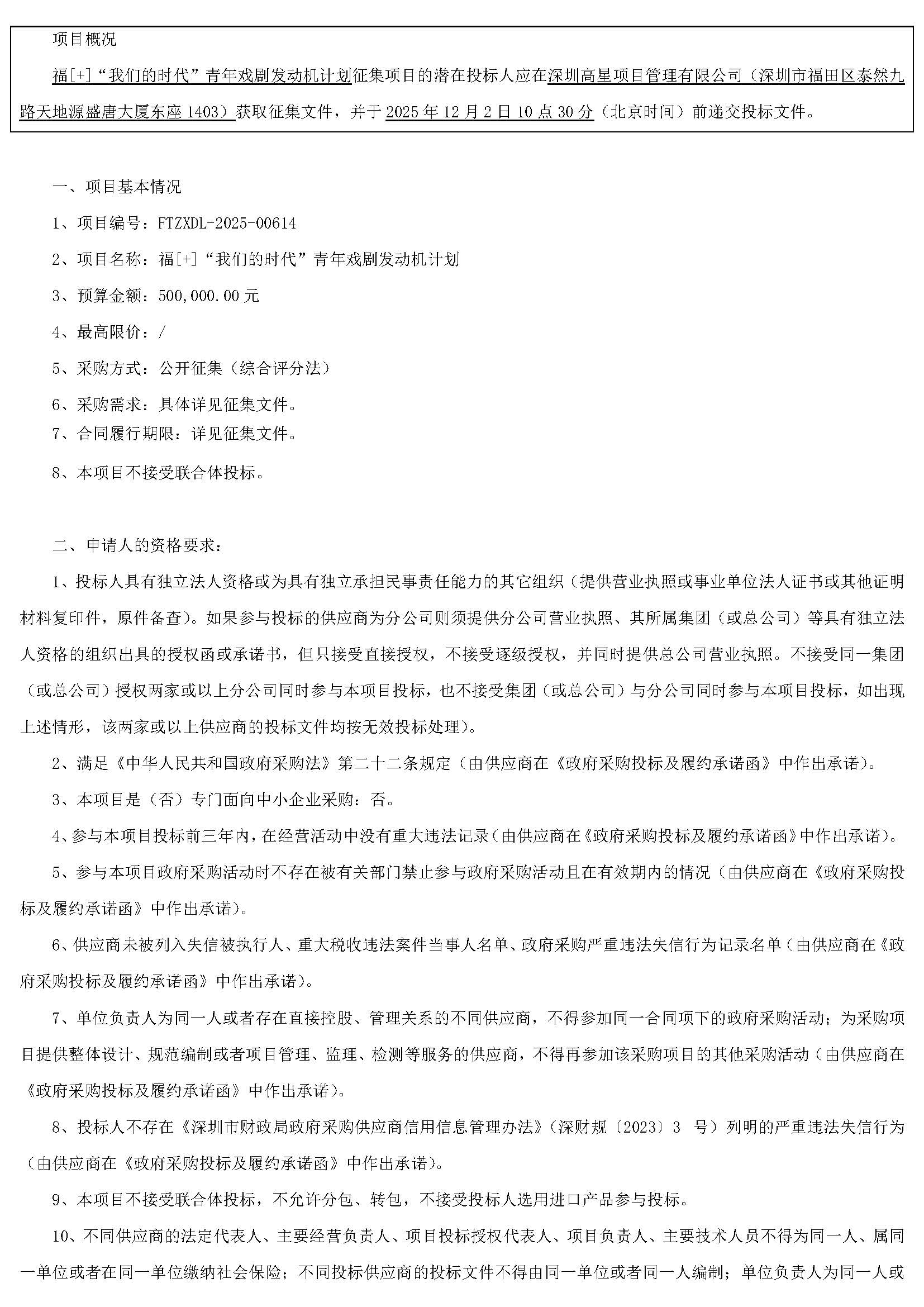 发动机计划的采购公告