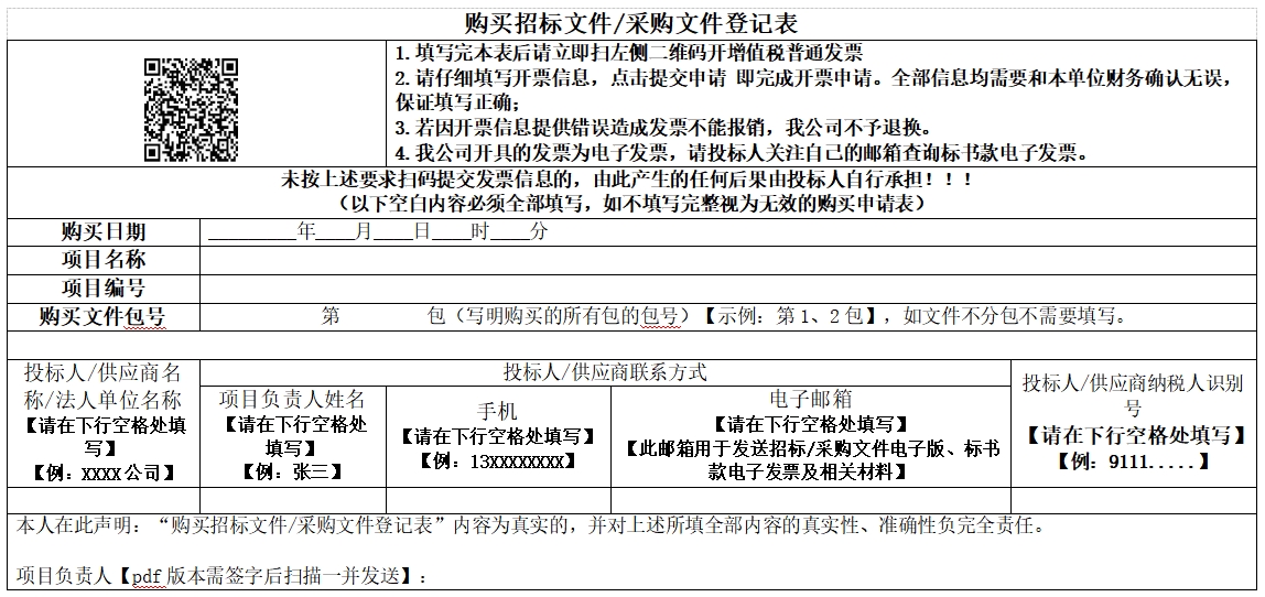 方式:请电汇购买议标文件。议标文件售价为***元人民币,售后不退。有兴趣的供应商可在****年**月**日至****年**月**日期间每个工作日下午**:**(北京时间)前汇款(不接受个人汇款)至采购代理机构指定账户,汇款时请必须注明“*********标书款”。汇款后请将汇款凭证和填写完毕的《购买招标文件/采购文件登记表》(*份可编辑的****版本及*份不可编辑的***版本),同时以电子邮件形式发送至********@***.**.**。采购代理机构工作日当日**:**时前收到邮件的于当日发送议标文件电子版,**:**时后收到的将视为是下一个工作日收到的邮件。