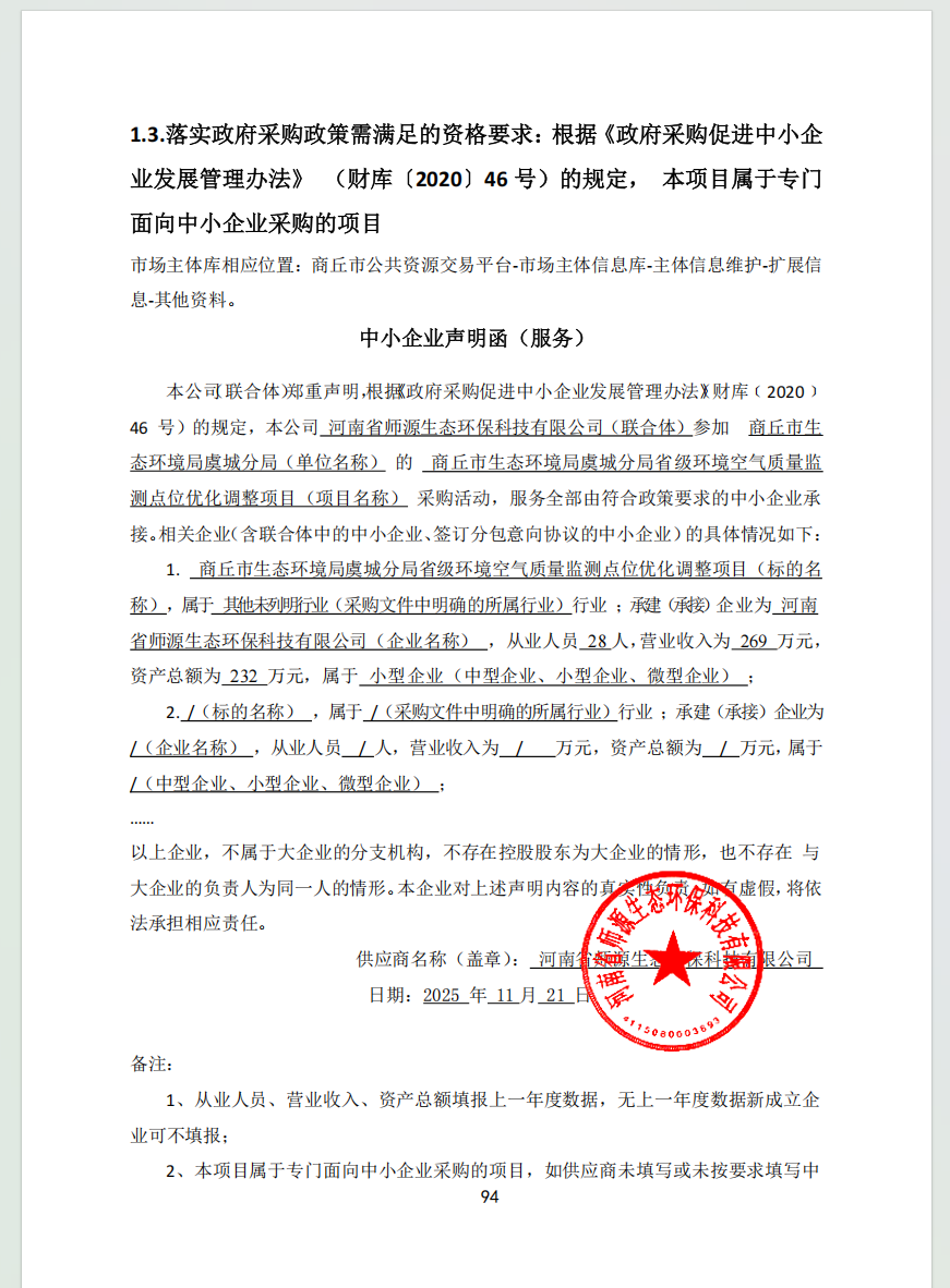 | *、采购项目名称:商丘市生态环境局虞城分局省级环境空气质量监测点位优化调整项目 | |||||||||||||||||||||||||||||||