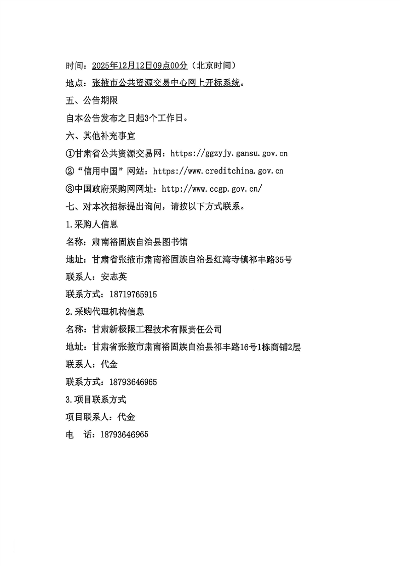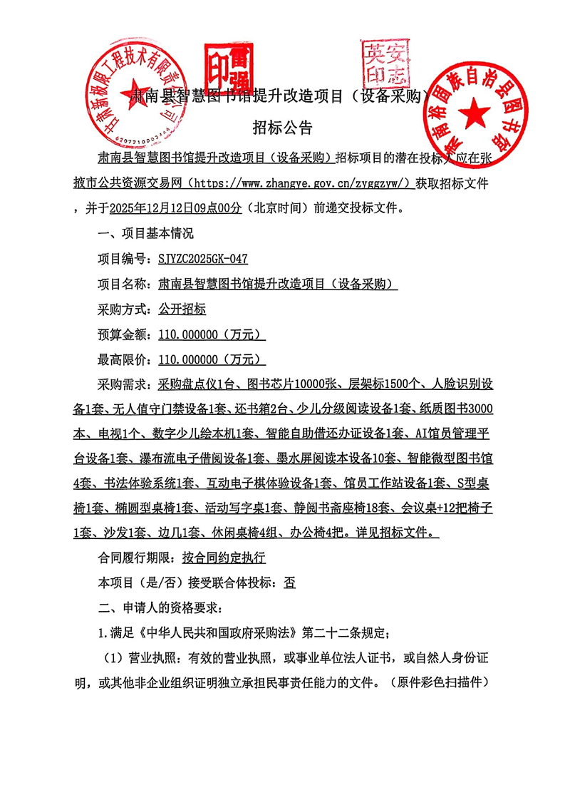 肃南县智慧图书馆提升改造项目(设备采购)招标公告