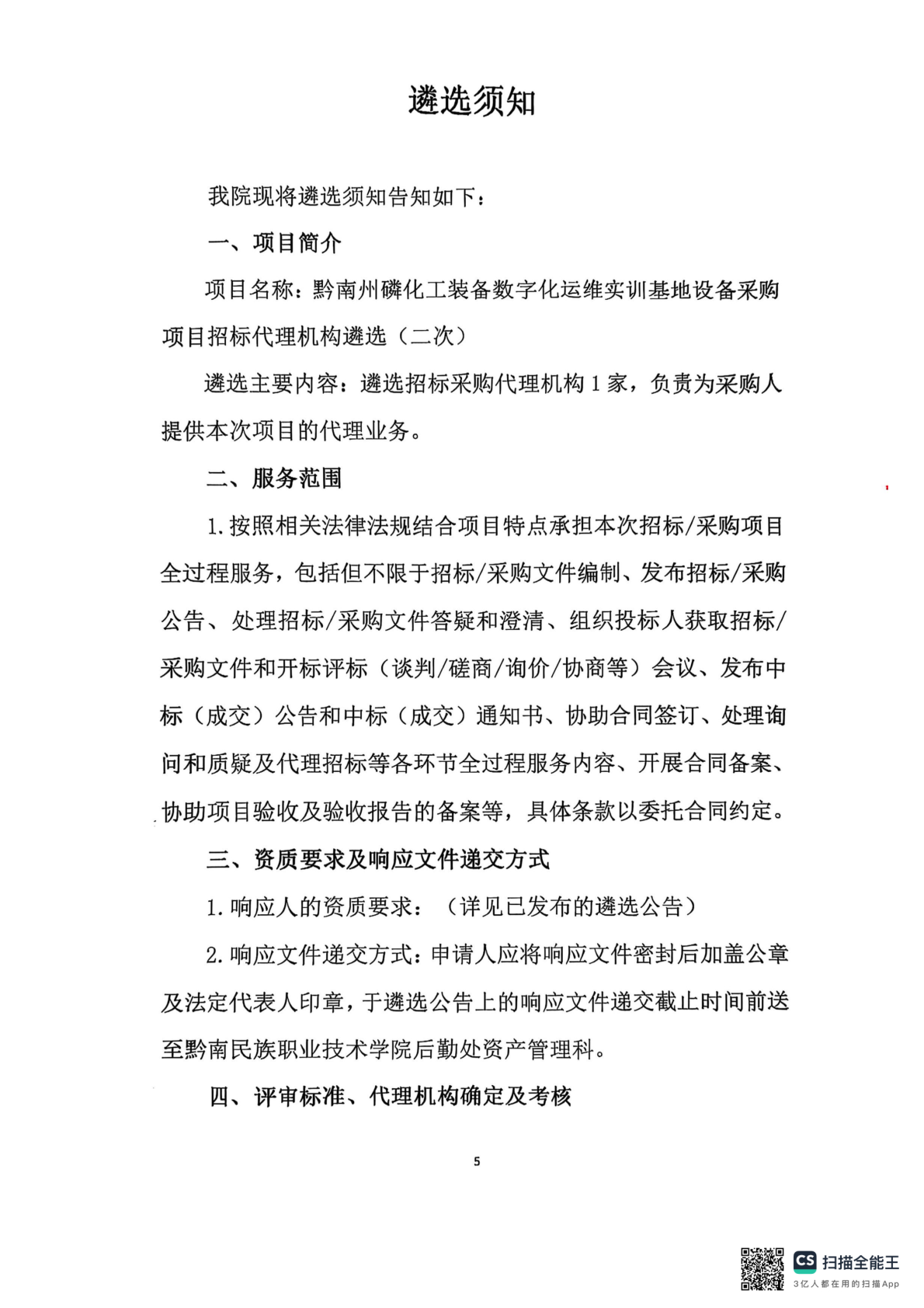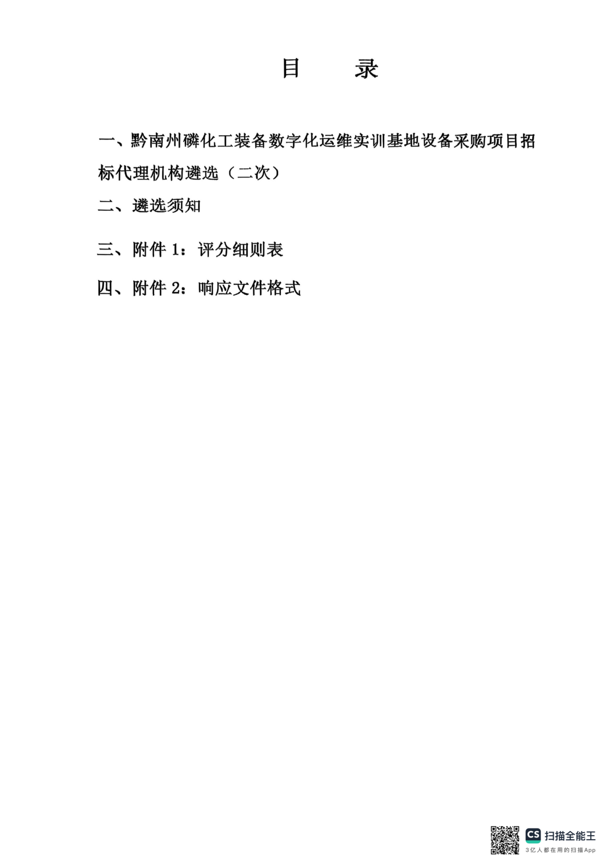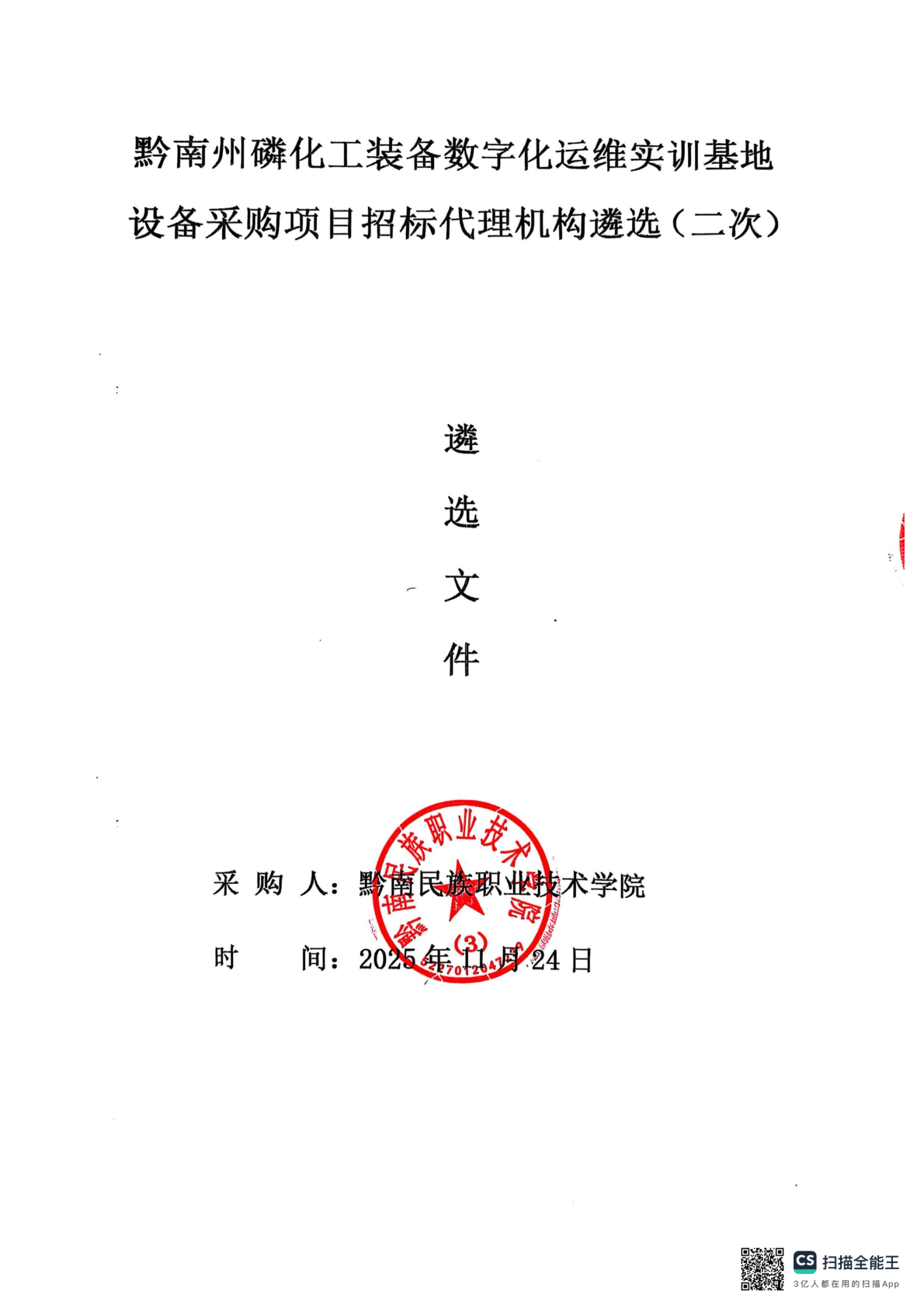 黔南州磷化工装备数字化运维实训基地设备采购项目招标代理机构遴选(二次)遴选文件