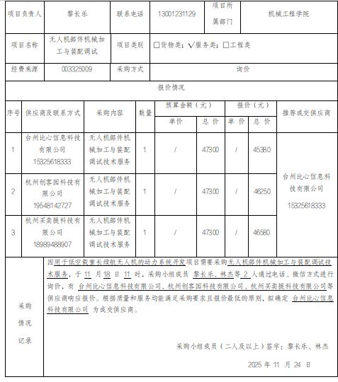 [分散采购]无人机部件机械加工与装配调试服务采购项目公示