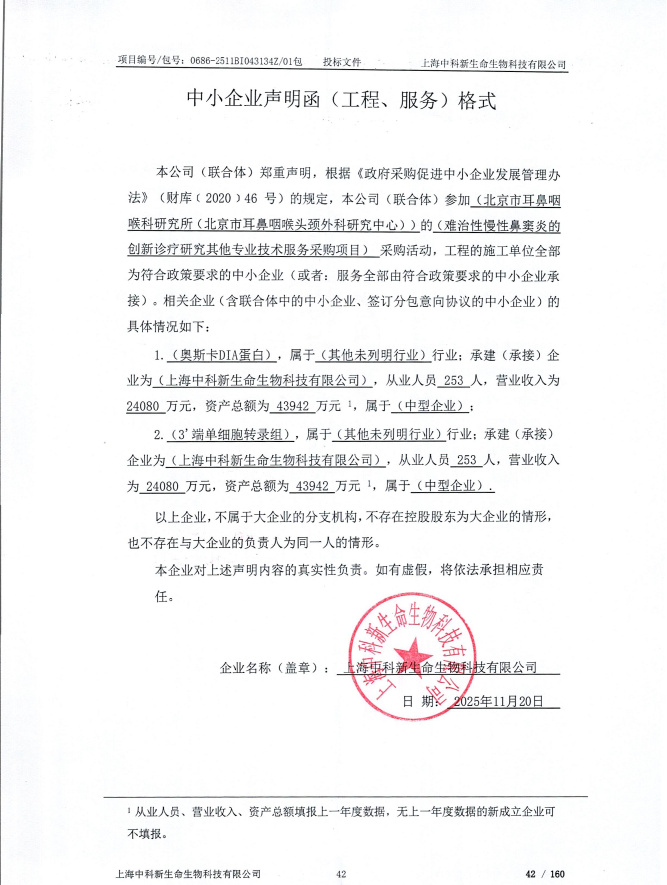 中标成交供应商名称:上海中科新生命生物科技有限公司